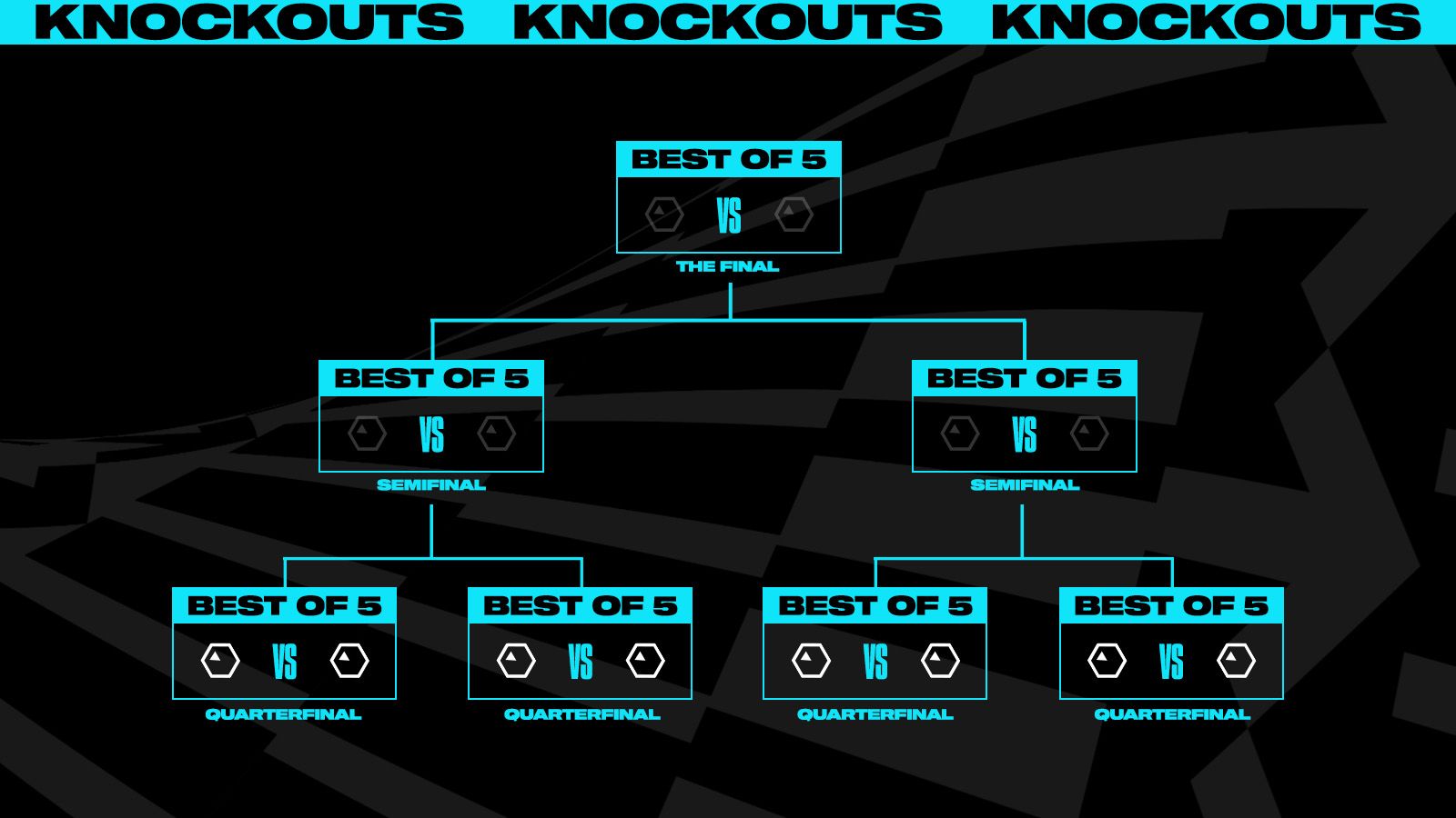 Once the Swiss round is complete, eight teams will have advanced to the Knockout Stage, which will continue to be a best-of-5, single-elimination bracket that will play out across Quarterfinals, Semifinals, and the Final until we crown a World Champion!