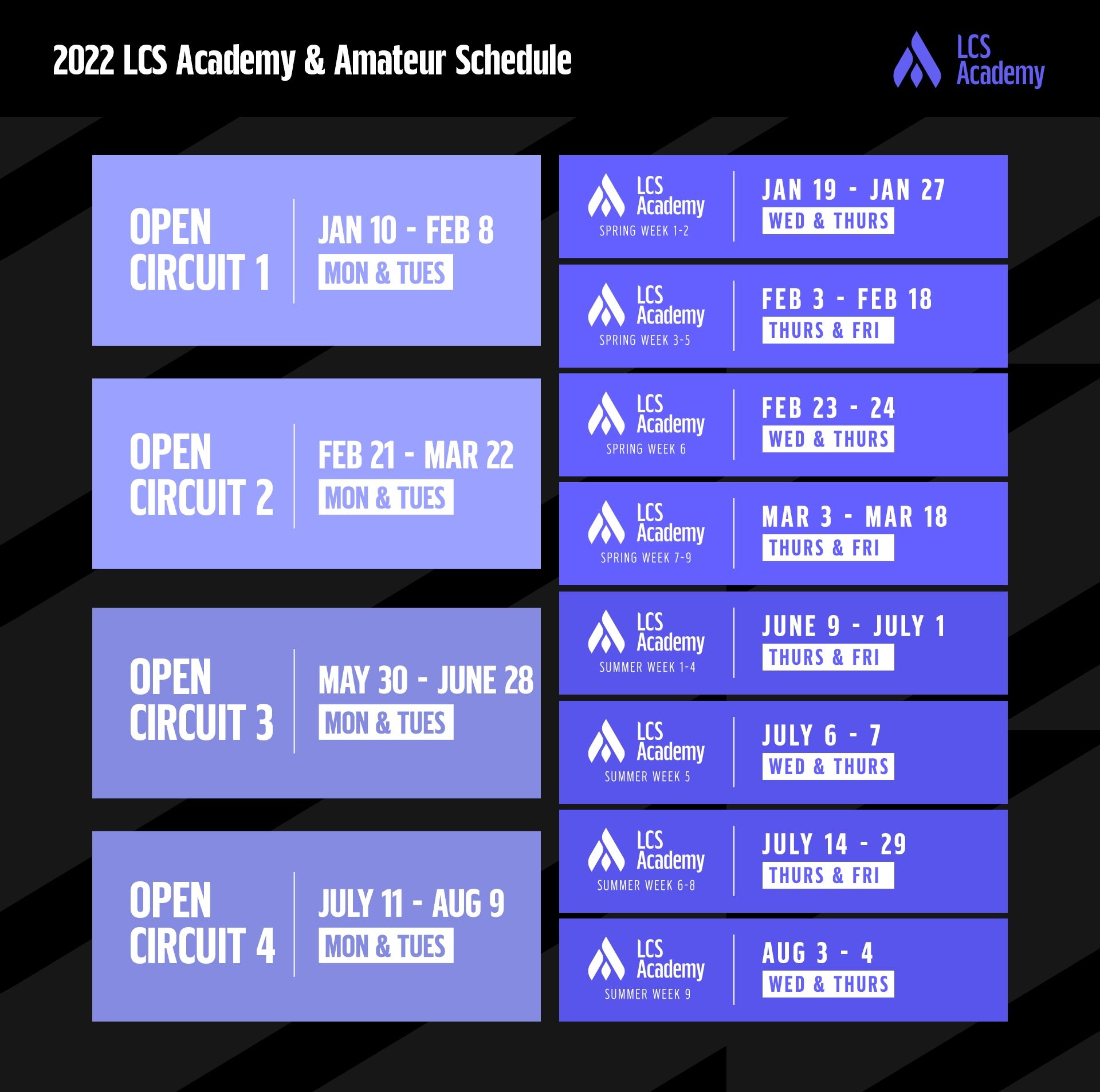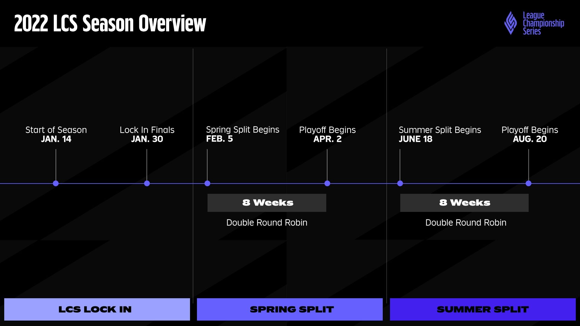 With the 2022 LCS season less than two months away, we’d like to provide our fans a first look at format changes across LCS, Academy and Amateur competitions. These adjustments were implemented in part based on robust feedback from both our franchise organizations and the LCS Players Association.