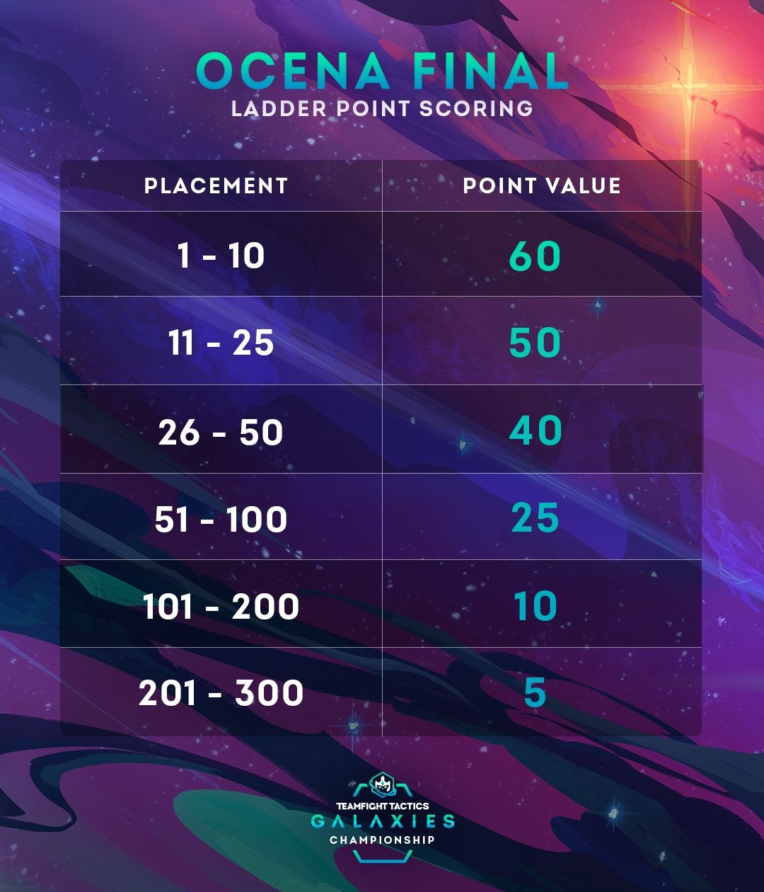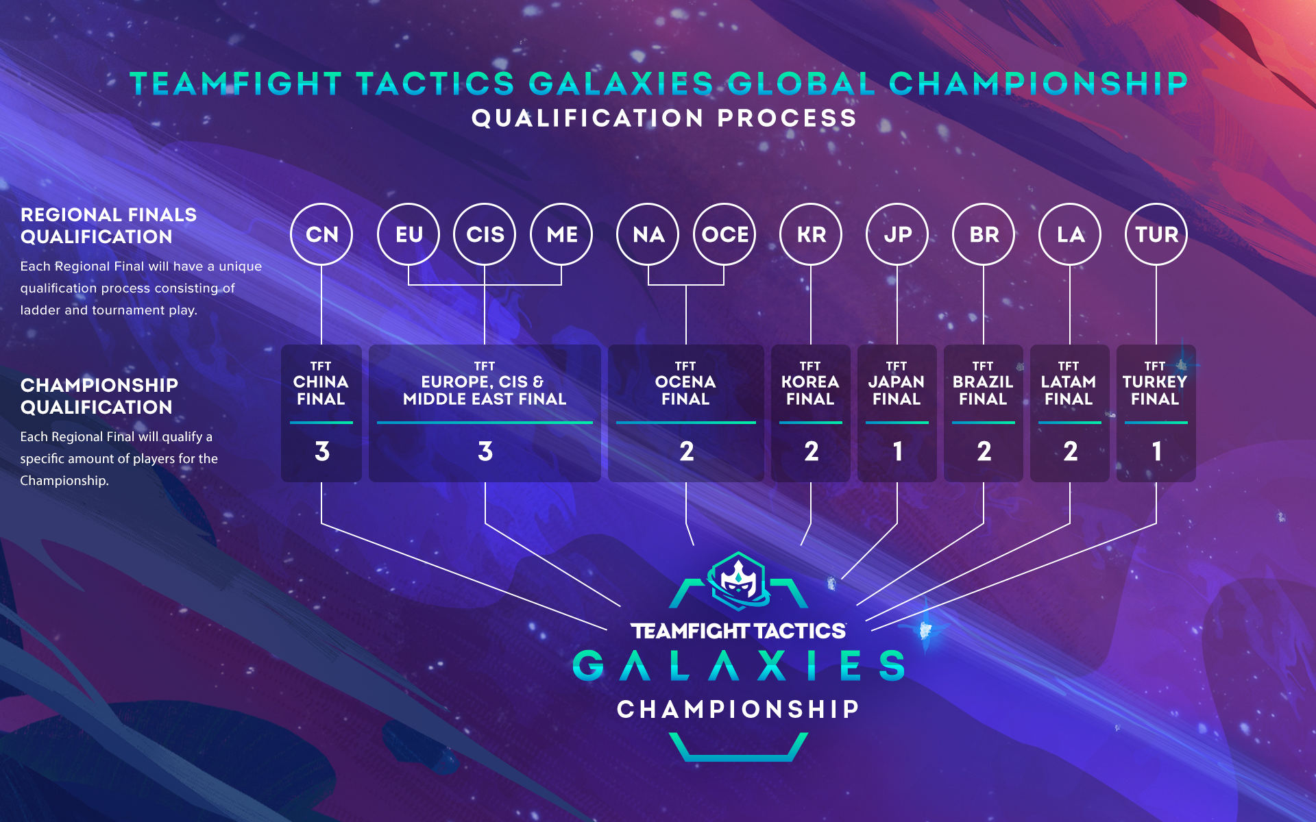 Over the next few months, players will compete for a seat at the final regional table in mid-August. From there, only the top two players will advance to the [Teamfight Tactics: Galaxies Championship][1], where they will represent their region and battle to be crowned the first-ever TFT World Champion.