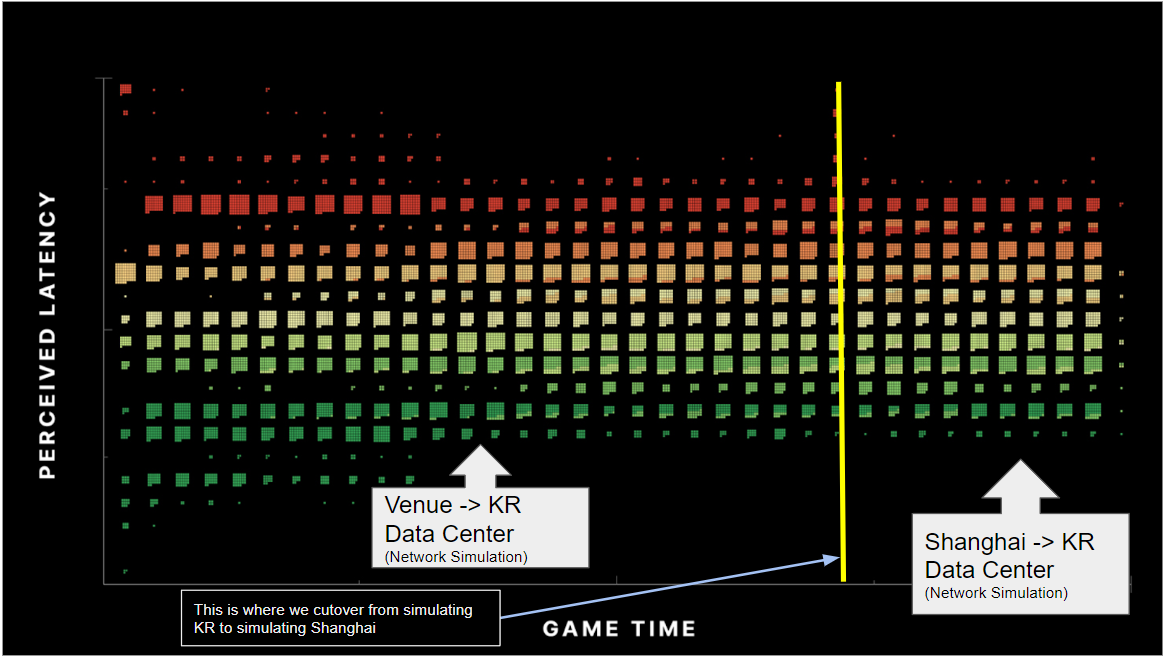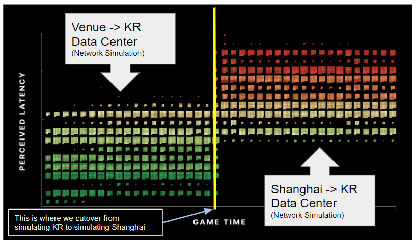 This explained a variety of issues we were experiencing. Our logs were not displaying the issue because the calculation was wrong. It explained why the latency was worse in the venue than on the internet servers because the bug shows up worse in lower ping environments. It also explained why the players in Busan felt that the ping was worse than 35 ms *because it actually **was** worse than the 35 ms ping that was shown on their screen.*