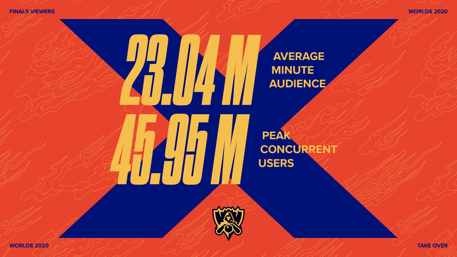 The Finals were broadcast in 16 languages and across 21 platforms. After collecting, validating, and standardizing the data from all over the world, we are excited to share that the World Championship Finals has hit another record breaking 23.04 Million Average Minute Audience (AMA).