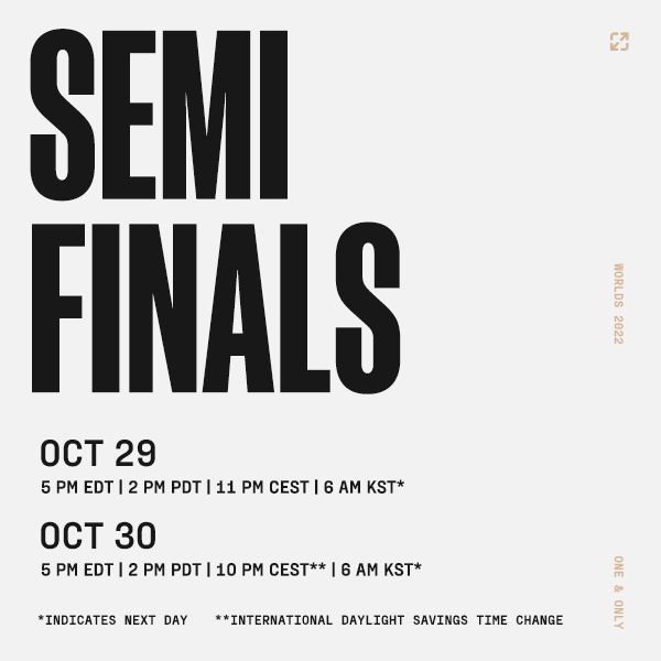 Worlds begins with the Play-In Stage on September 29 and will conclude with Finals on November 5. Individual stage dates are listed below.