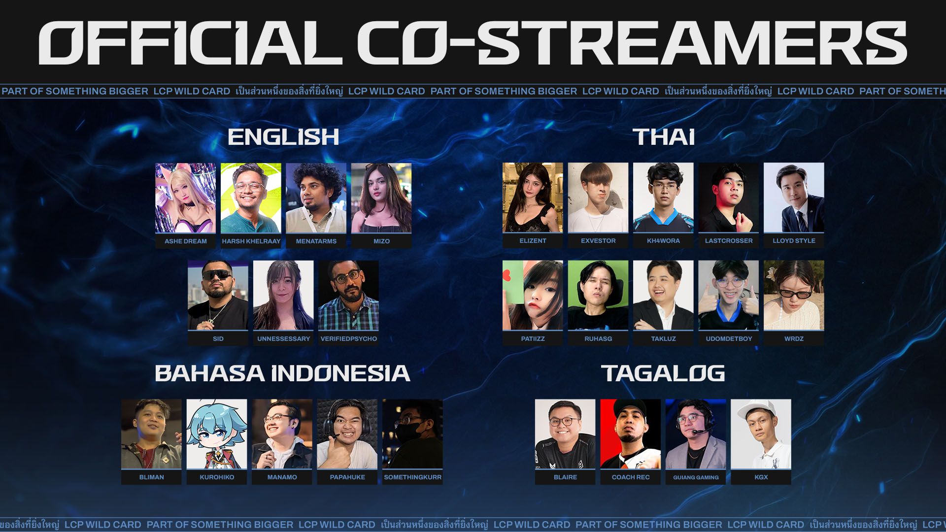 As we build toward the LCP Wild Card Playoffs, we’re excited to share the first wave of official co-streamers for this event. We’ll have coverage in Bahasa Indonesia, Thai, Tagalog, and English, so you can follow the action with us from August 28-31.