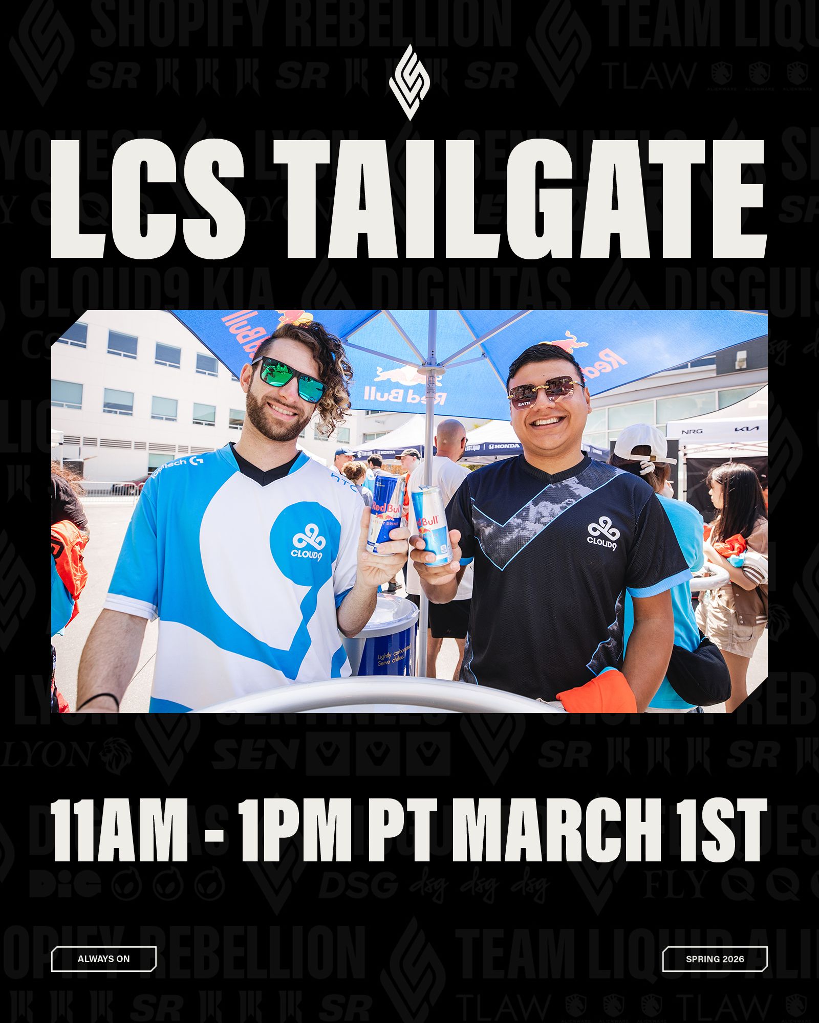 Kia: Kick off Split 1 Finals with Kia and celebrate the return of the LCS! Fans can explore the first-ever 2027 Kia Telluride Hybrid and participate in the Kia Locker Challenge, an interactive experience for a chance to win exclusive prizing. Make sure to also visit the official partner of Kia, Cloud9 Kia's Fan Fest booth as well!