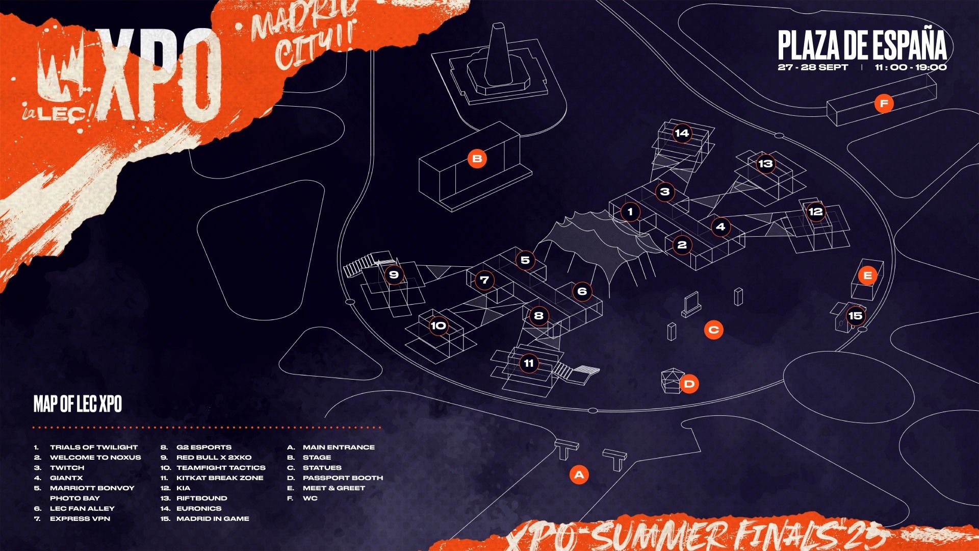 La XPO DE LA LEC vuelve este año para ofrecer una experiencia inolvidable repleta de lo que os encanta de League of Legends y de la LEC. Acompañadnos en Madrid, en Plaza de España, los días 27 y 28 de septiembre, de 11:00 a 19:00 (horario peninsular) y preparaos para toda la emoción que os espera. Y sí, la entrada es gratuita