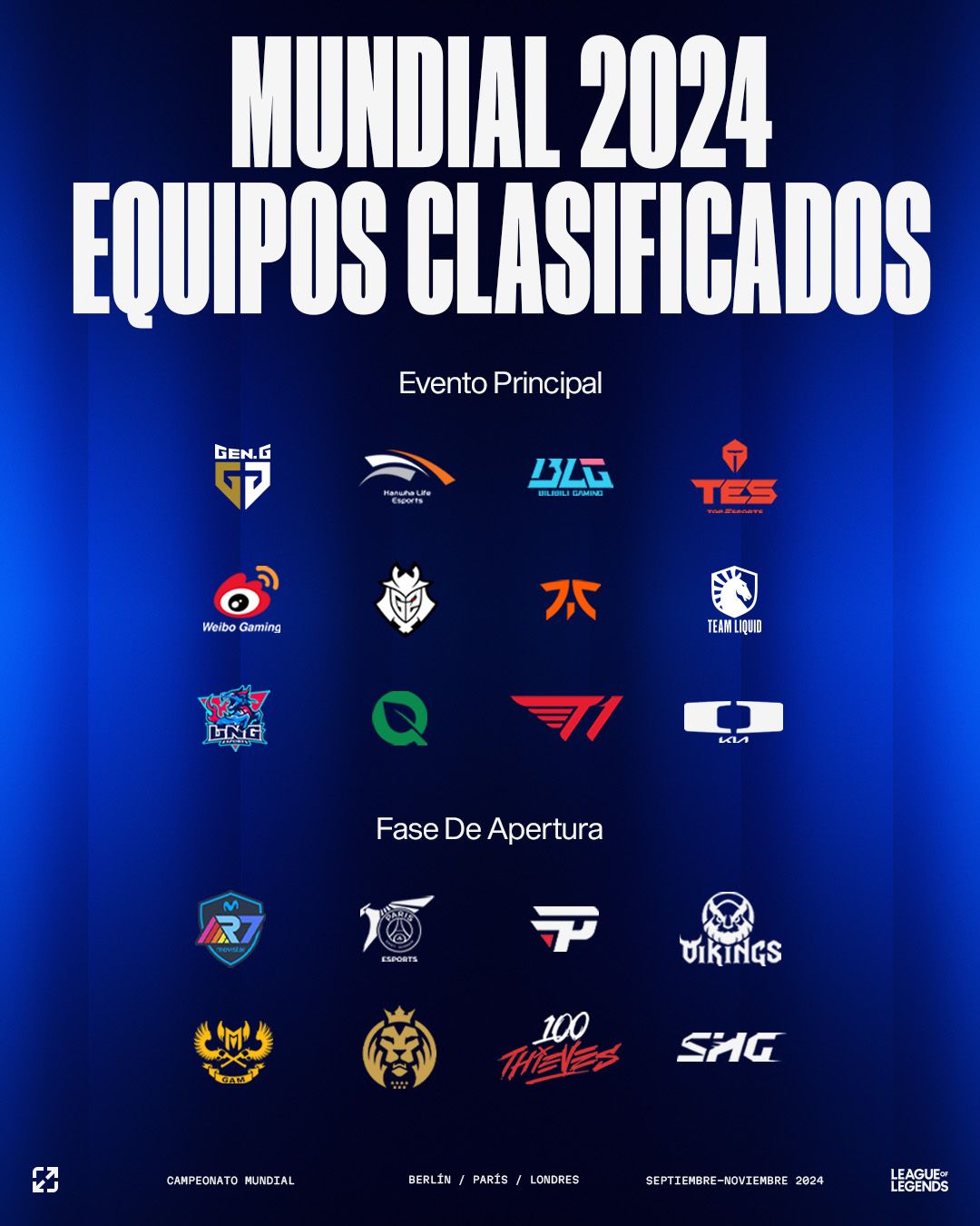 El Campeonato Mundial de League of Legends, también llamando "Mundial", es la cumbre de las competiciones de esports, donde los mejores equipos de ocho regiones compiten por hacerse con el título de campeón del mundo. Se celebra al final de la temporada regular en una región anfitriona que cambia cada año y en este torneo participan equipos clasificados de las ligas profesionales del mundo entero. Este año, Europa será la anfitriona del torneo.