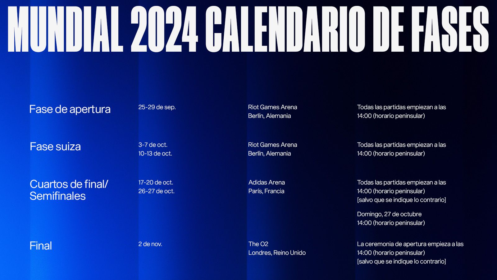 Fase de apertura: 25 - 29 de septiembre; Riot Games Arena, Berlín, Alemania.