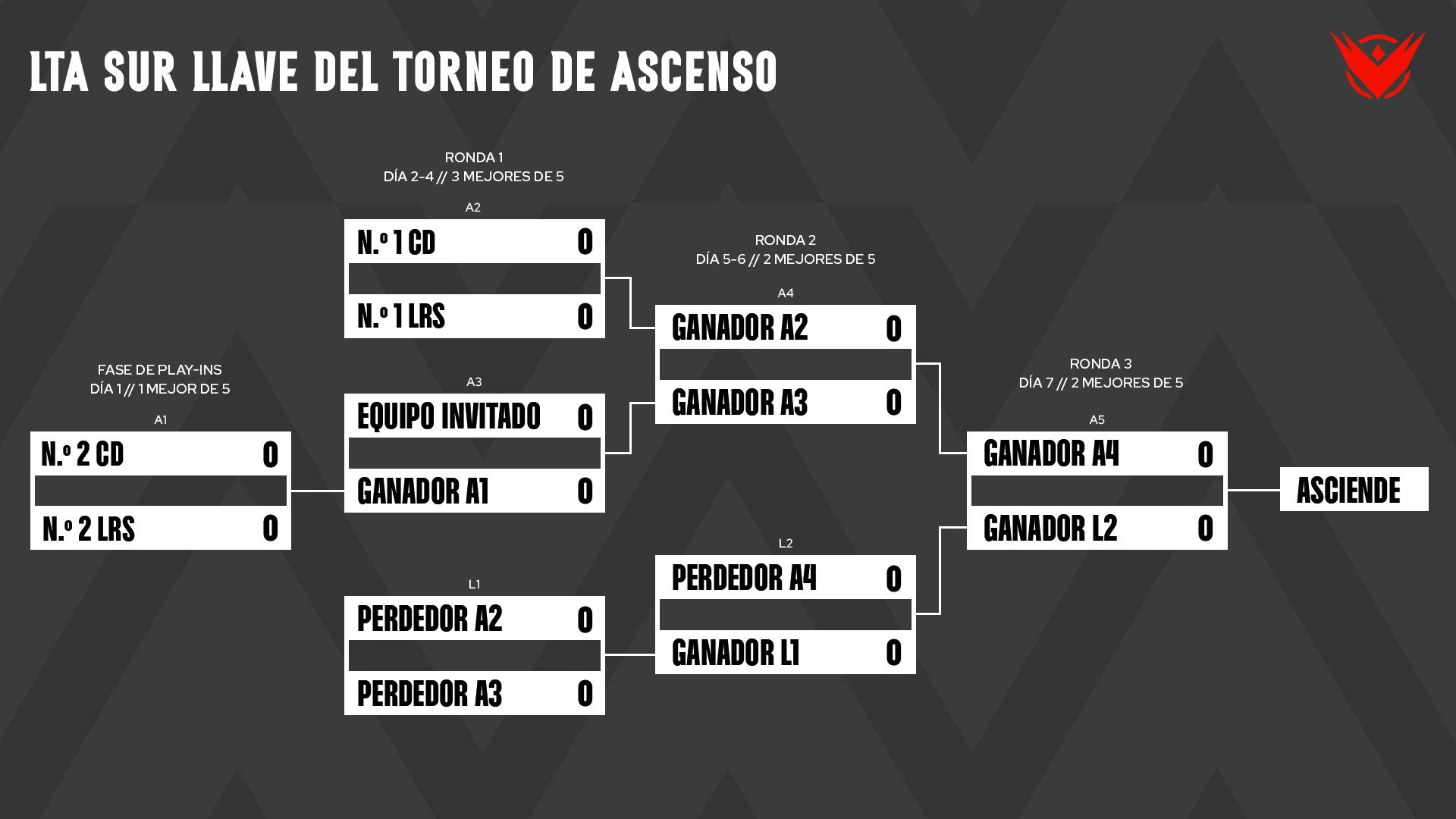 Torneo de Ascenso: El equipo defensor de la plaza de invitado de Nivel 1 tendrá ventaja en la llave, pero deberá competir para volver a ganar su plaza, lo que garantiza que no se clasificará de nuevo de forma automática. Cada grupo de ascenso incluirá los 2 mejores equipos de cada liga de Nivel 2, manteniendo la representación por regiones. Puedes consultar este artículo para más información sobre el Torneo de Ascenso.