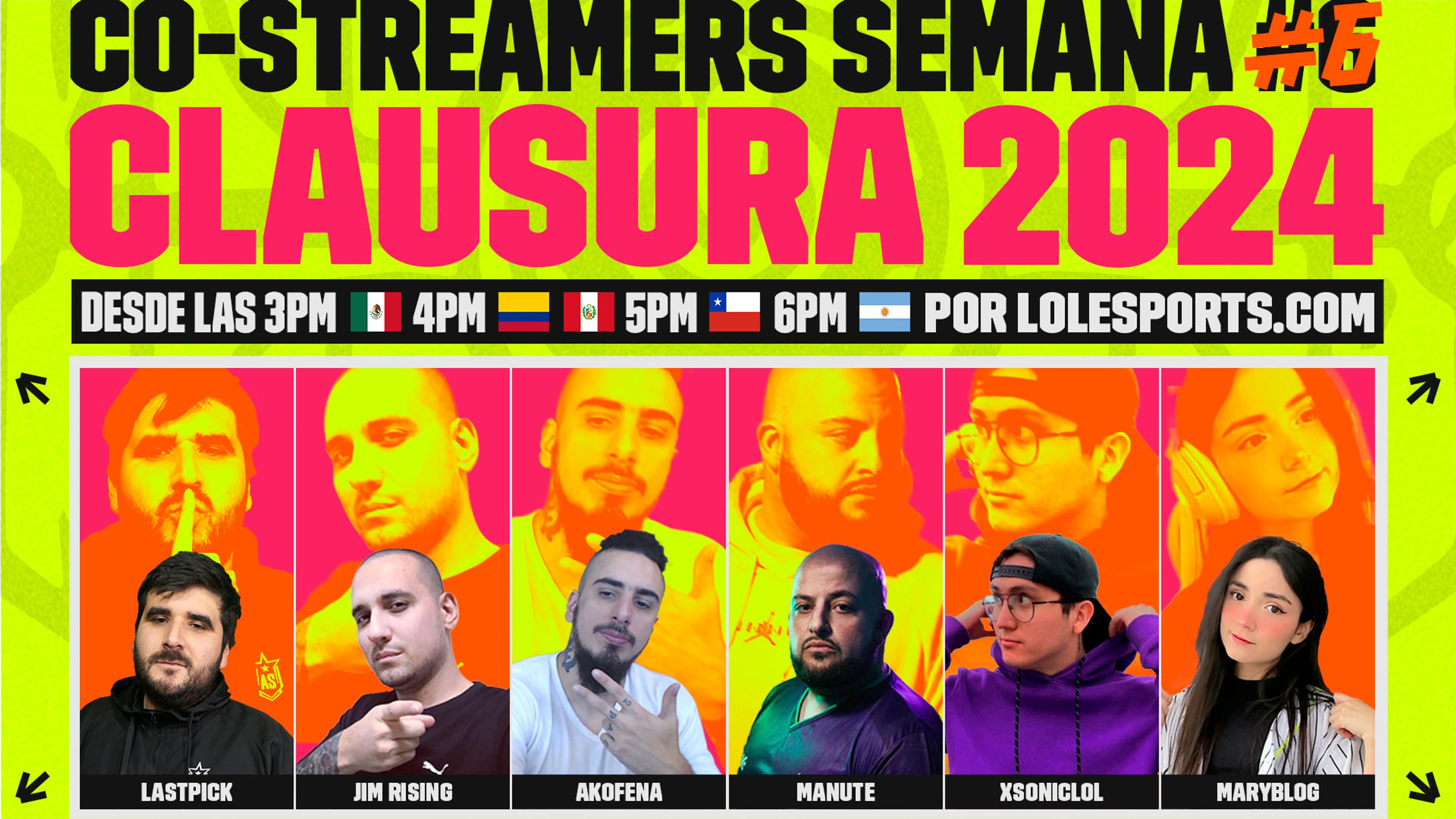 Los co-streamers continúan en el clausura 2024 con nuestro Esports Influencer Program, a través del cual colaboramos con creadores de contenido de toda la región para vivir juntos la emoción de la liga más importante de League of Legends en la región, la LLA.