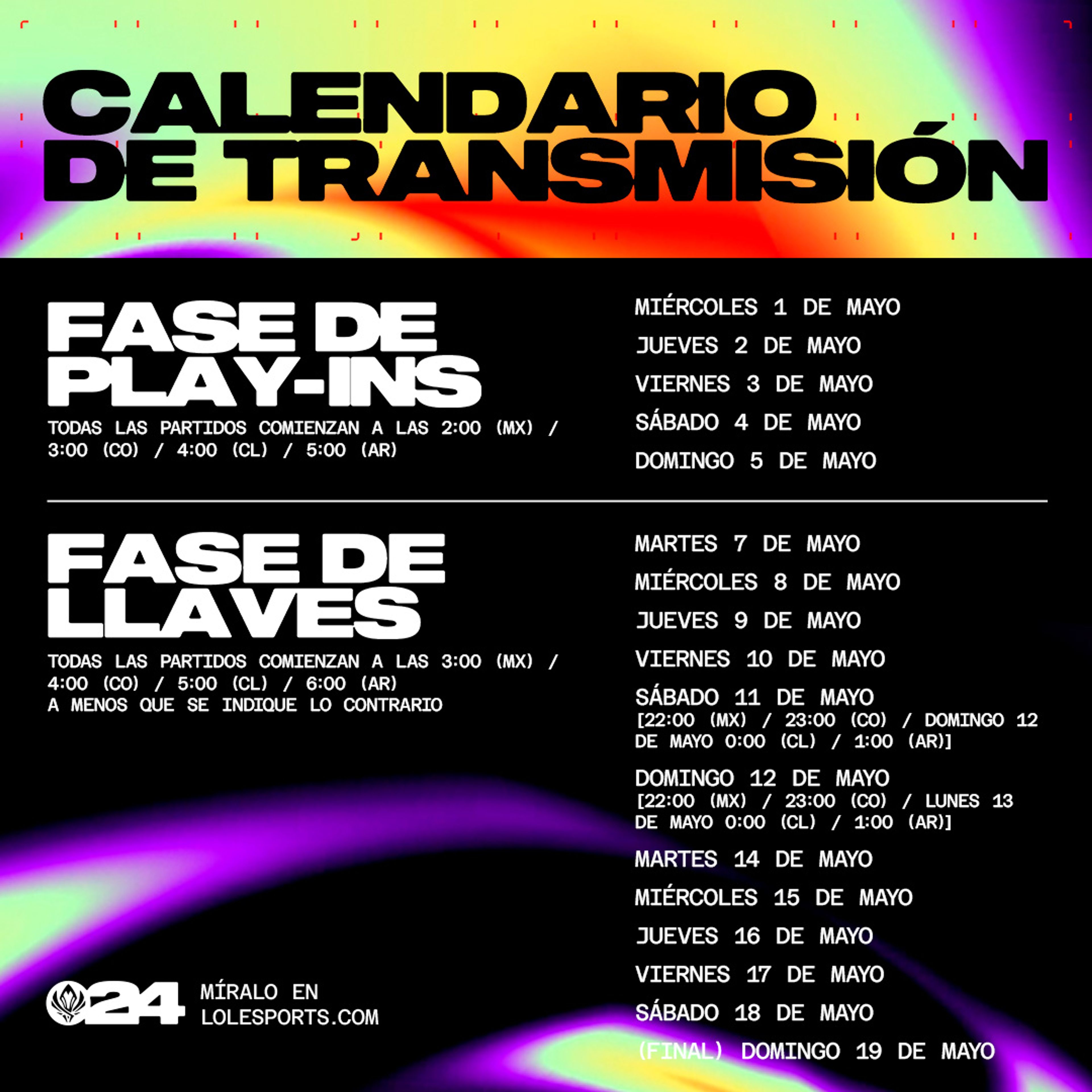 Fase de Play-Ins (todas las partidas comienzan a las 02:00 (MX) / 03:00 (CO) / 04:00 (CL) / 05:00 (AR)