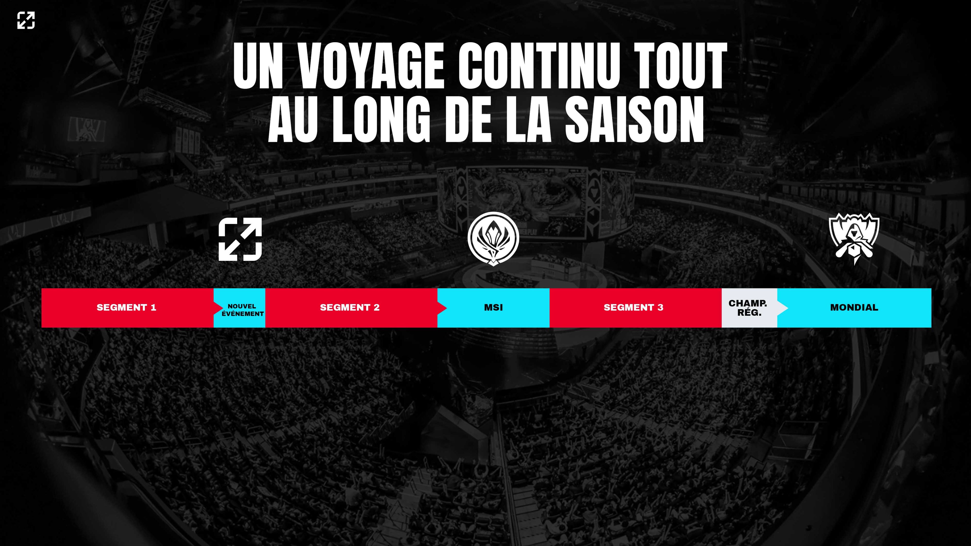 Qui dit nouvel événement international dit également redéfinition de notre structure régionale de segments. À compter de la saison prochaine, toutes les régions commenceront par le nouveau tournoi international/premier segment. Un deuxième segment qualifiera ensuite les équipes pour le MSI, qui aura lieu plus tard dans l'année, autour de début juillet. Le troisième et dernier segment de chaque région se conclura par un championnat régional qui sacrera un champion saisonnier dans chaque région. Se focaliser sur un championnat régional d'une seule saison garantit une plus grande cohérence et une meilleure interconnexion des segments, fait monter les enjeux de nombreux matchs de la saison régulière et offre une progression intéressante tout au long de la saison jusqu'au Mondial, notre plus grand événement de l'année.