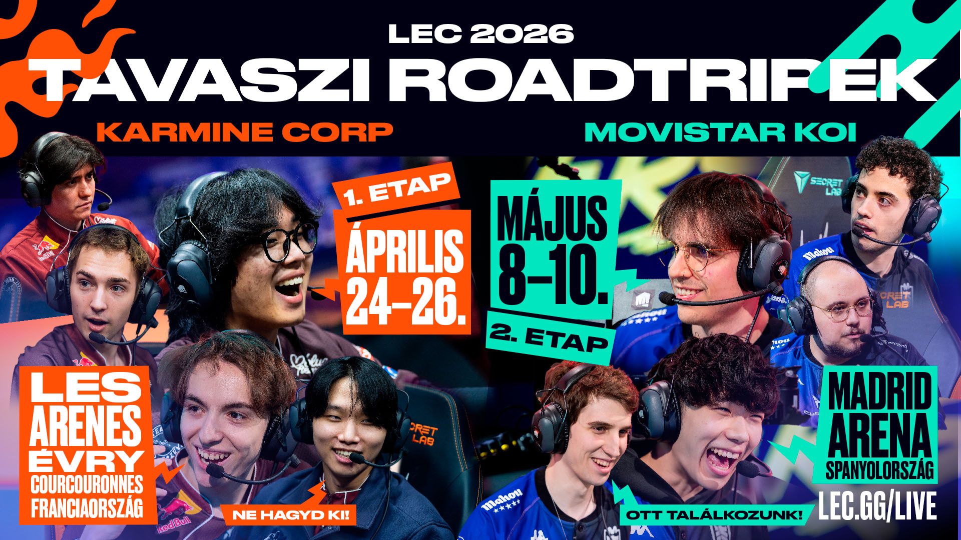 Miután az év stílusosan startolt el az LEC Versus-döntővel Badalonában, máris izgatottan várjuk a következő állomásokat. Idén tavasszal két újabb LEC Roadtrip turnéval jelentkezünk, amikkel ezúttal Francia- és Spanyolországba látogatunk.