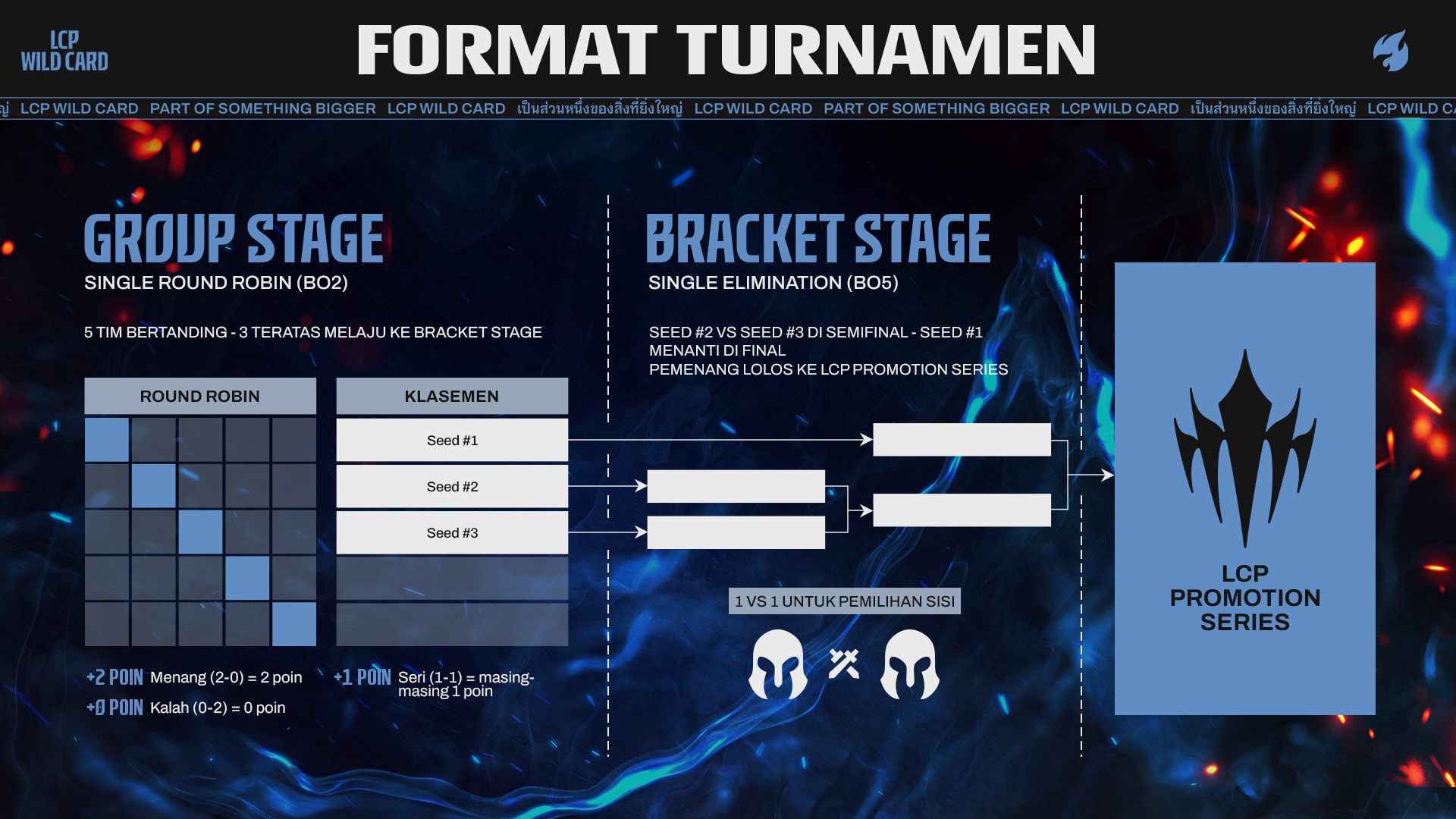 Playoff LCP Wild Card akan berlangsung mulai 28—31 Agustus dan akan dimainkan secara online. Para penggemar bisa mengikuti aksinya melalui link di bawah.