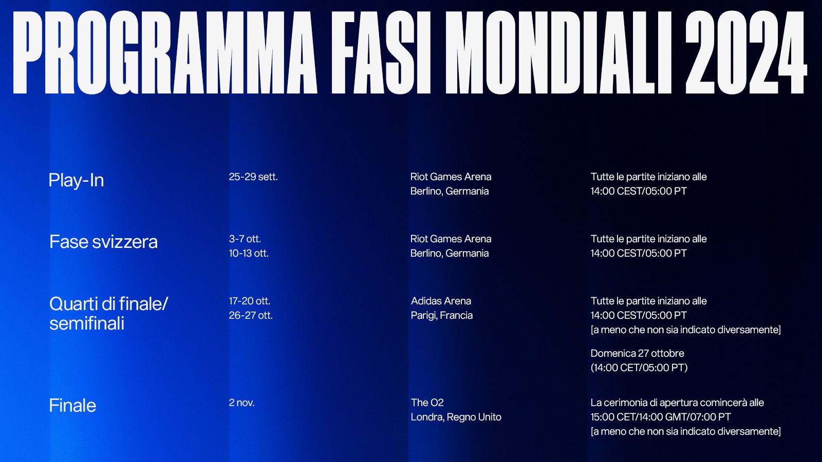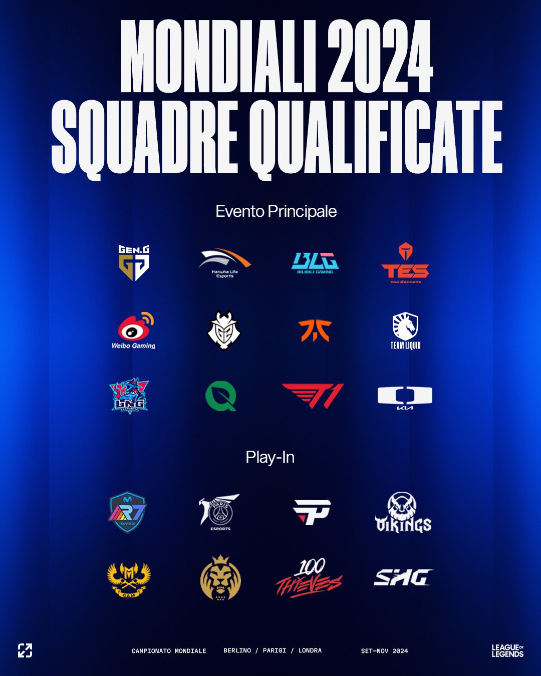 Play-In: 25-29 settembre; Riot Games Arena, Berlino, Germania.