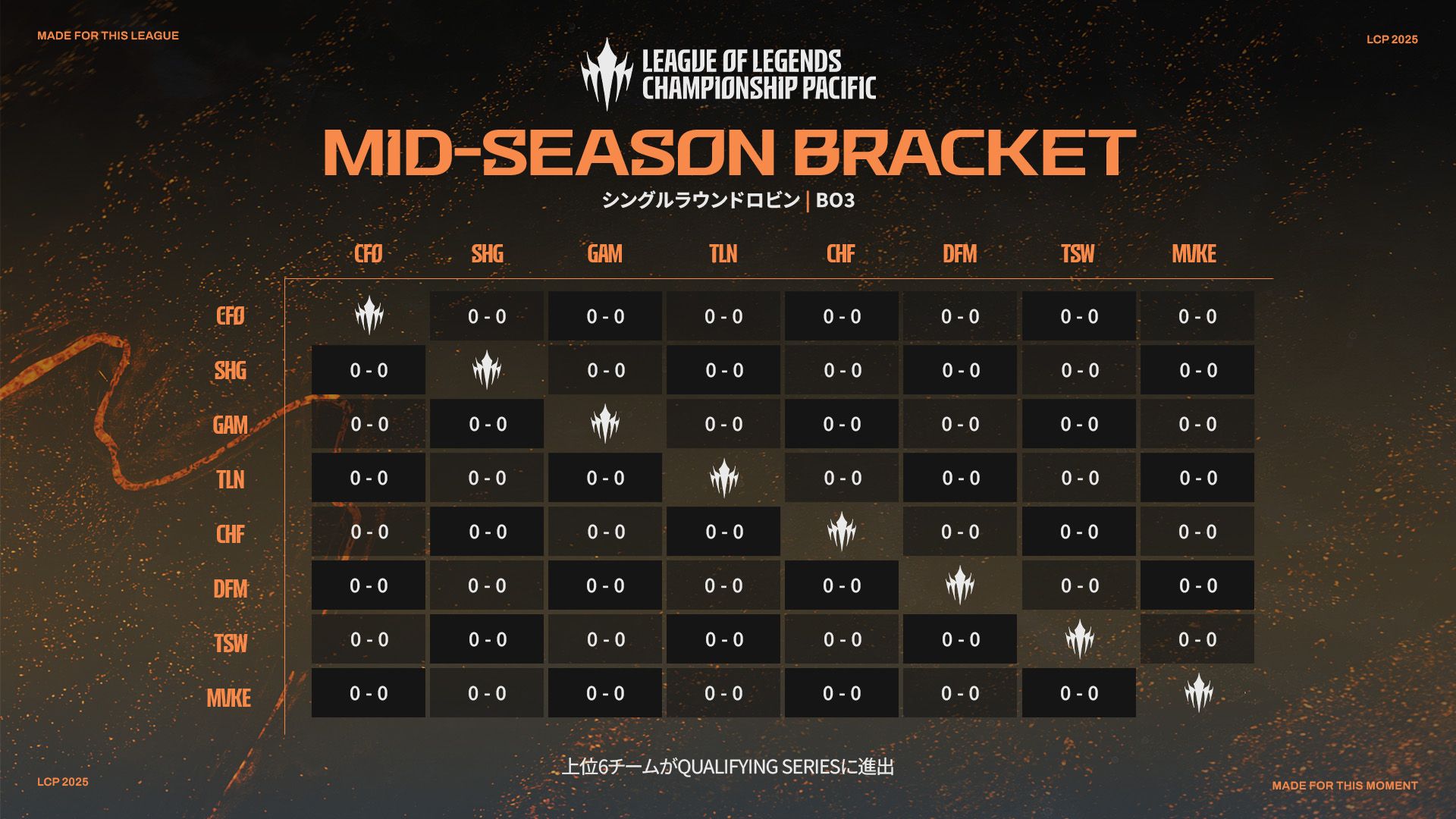 また、Mid Seasonのレギュラーシーズンにおけるチーム成績は、LCP Season Finalsでのグループ分けにも影響を与えます。各チームはQualifying Seriesへの出場権と同時に、今年最後のSplitにおける有利なシード権を目指して、レギュラーシーズンの戦いに臨むことになります。