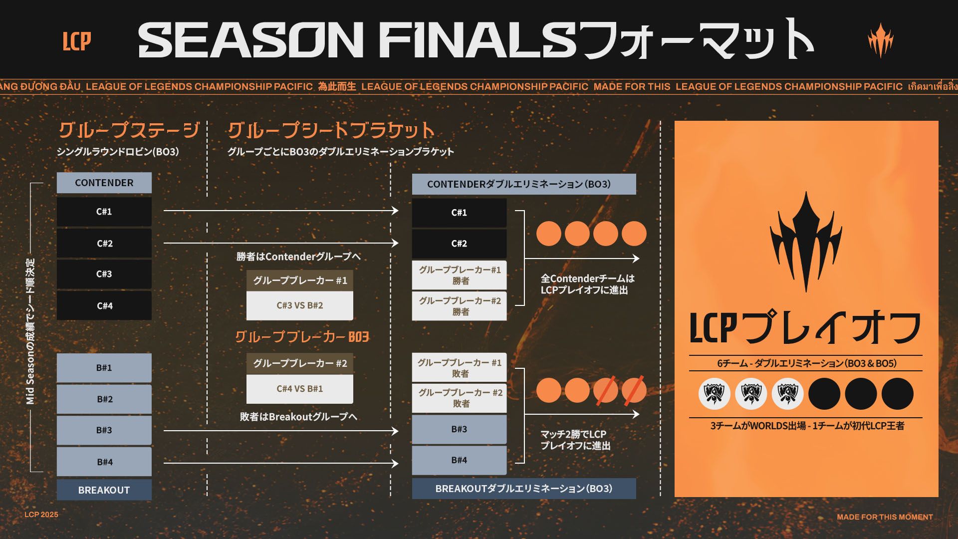 Season KickoffとMid Seasonのフォーマットについては、先日公開したこちらの2025シーズン概要記事で詳しく紹介しています。またLCPのフォーマットと昇格/降格トーナメントについてはこちらのフォーマット解説動画でも触れているので併せてご覧ください。