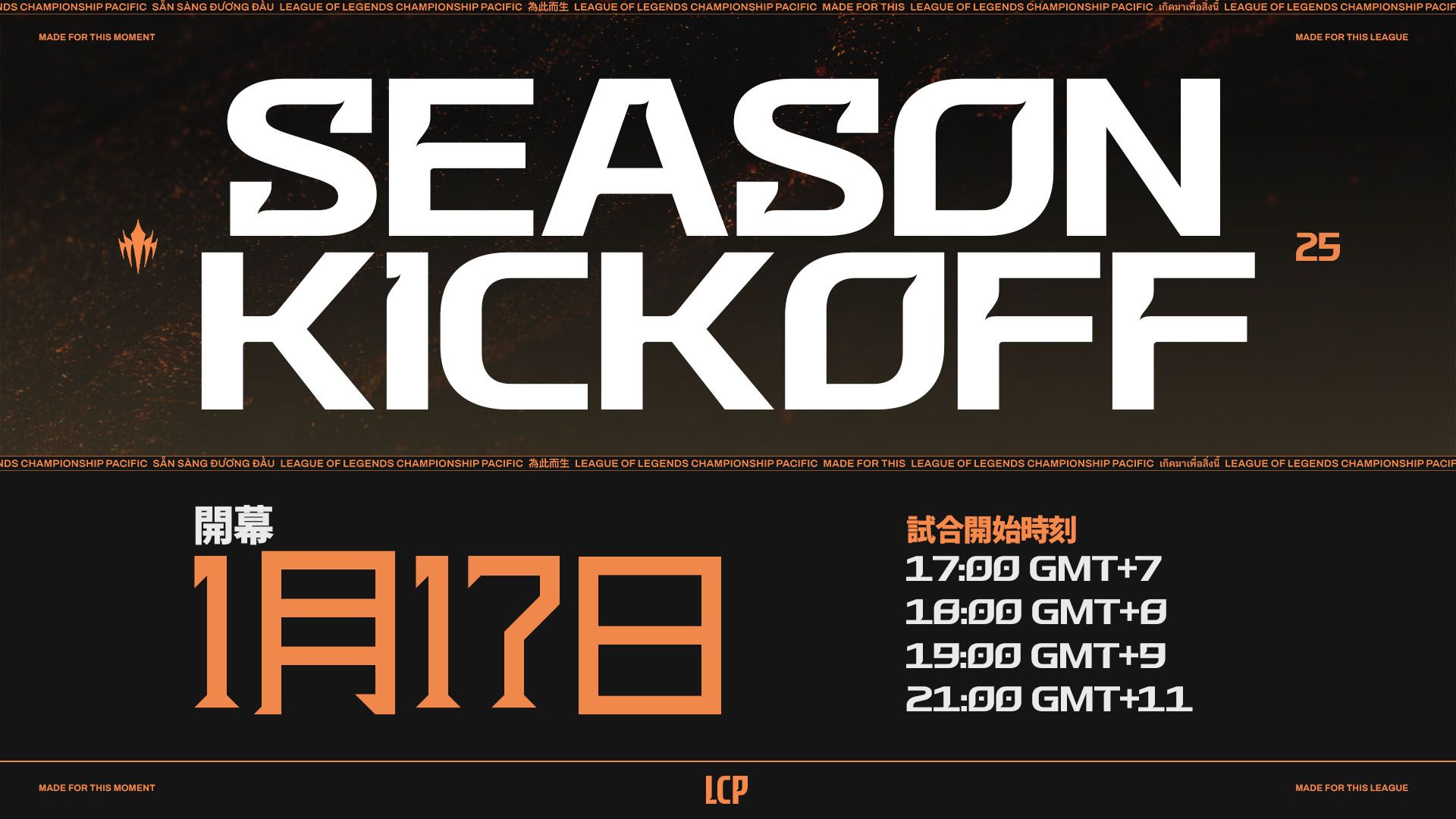 最初のスプリット「LCP Season Kickoff」では初開催・シーズン最初の国際大会「First Stand」の出場権をかけた戦いが繰り広げられます。Season Kickoffの開催期間は1月17日~2月23日で、試合は各開催日の19:00(日本時間)よりスタートします。