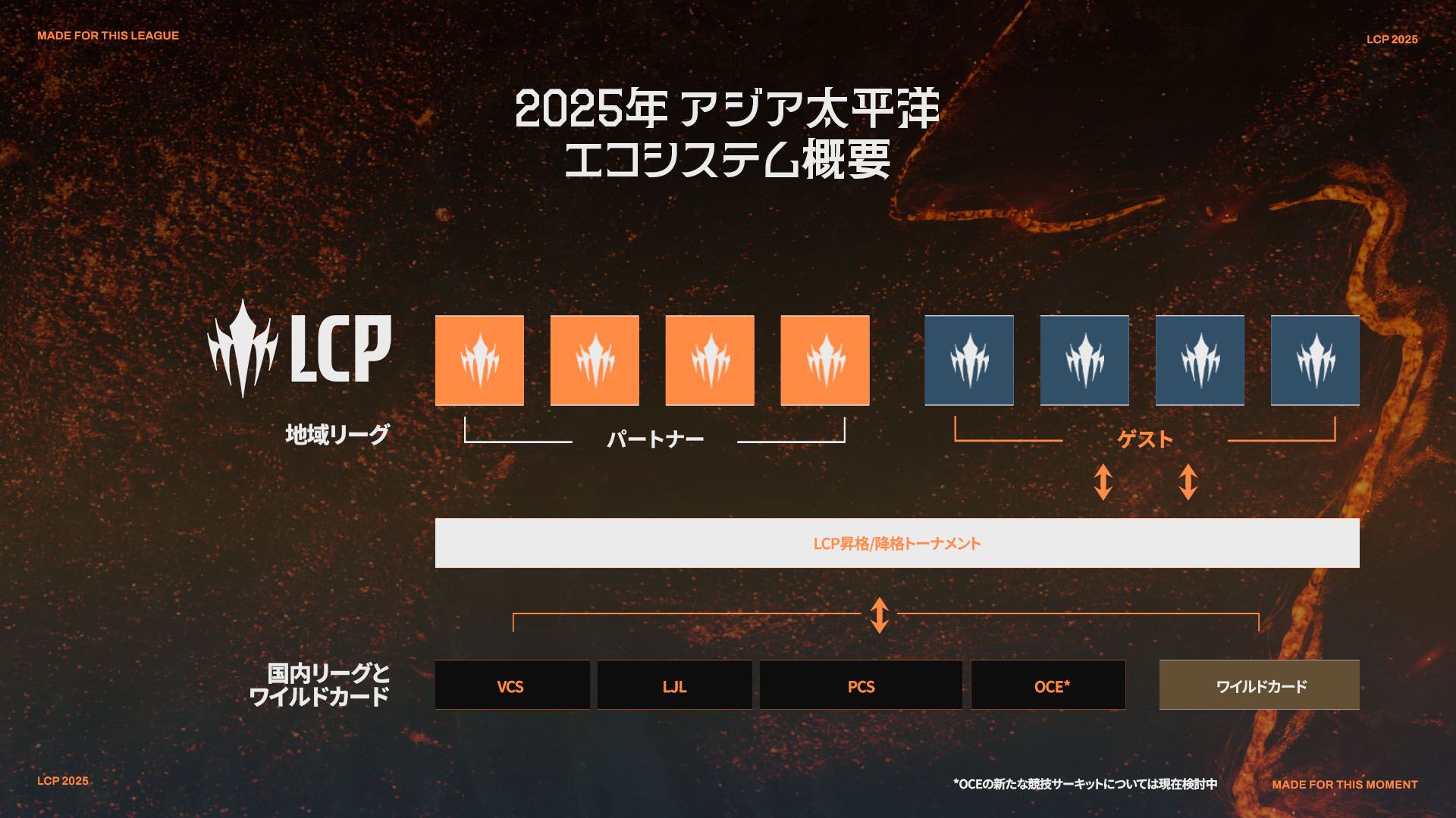 来年はさらに昇格/降格システムも導入され、アジア太平洋エコシステムの全チームにLCPの頂点を目指す権利が開かれることになり、競争はより一層熾烈さを増します。