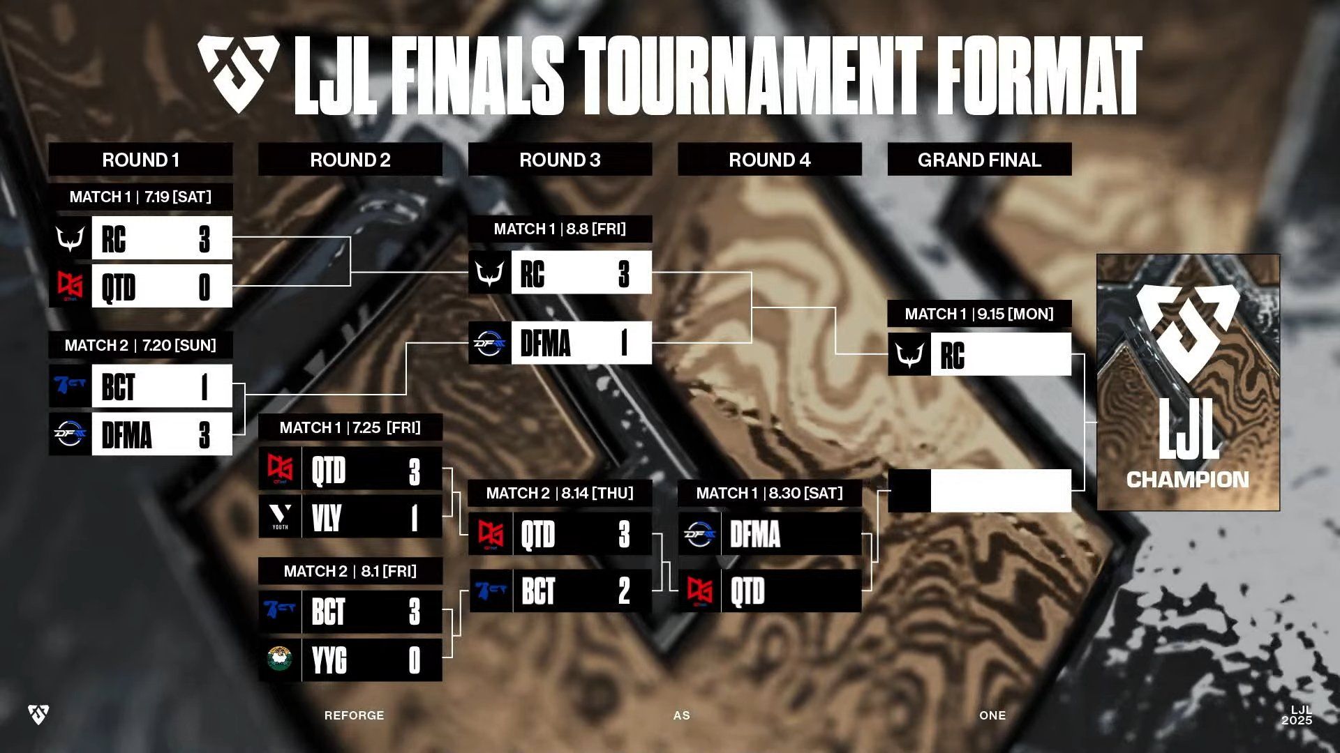 LJL 2025 Grand Finalはフィアレスドラフトを採用したBo 5形式で行われ、勝者はLJL 2025王者の称号とLCP 昇格・降格トーナメントへの出場権を獲得できます。