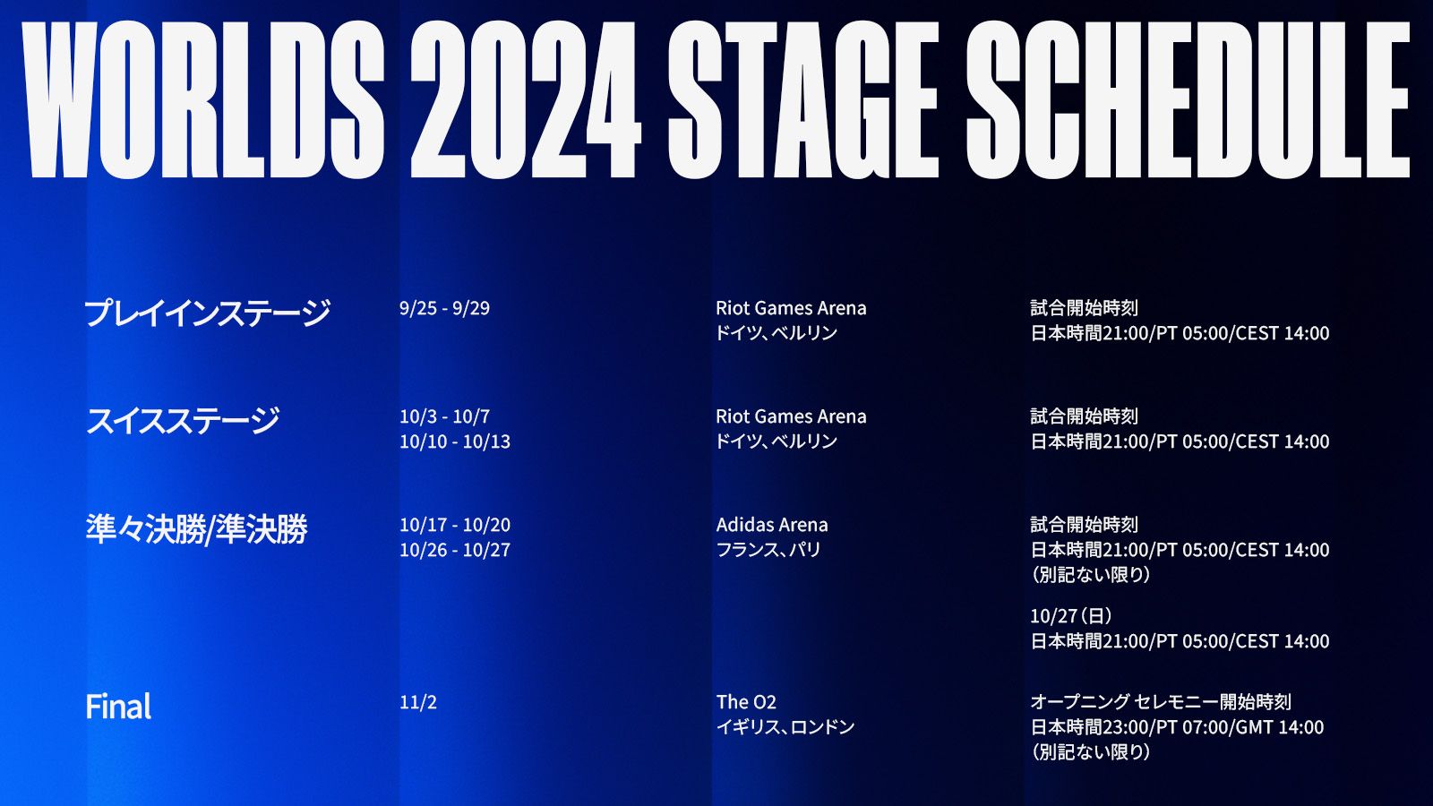 Worldsは9月25日のプレイインステージから始まり、11月2日のFinalで閉幕します。なお今年も現地を訪れるファン向けにWorlds Fan Fest(ロンドン、10月31日からFinalまで)を開催予定です。