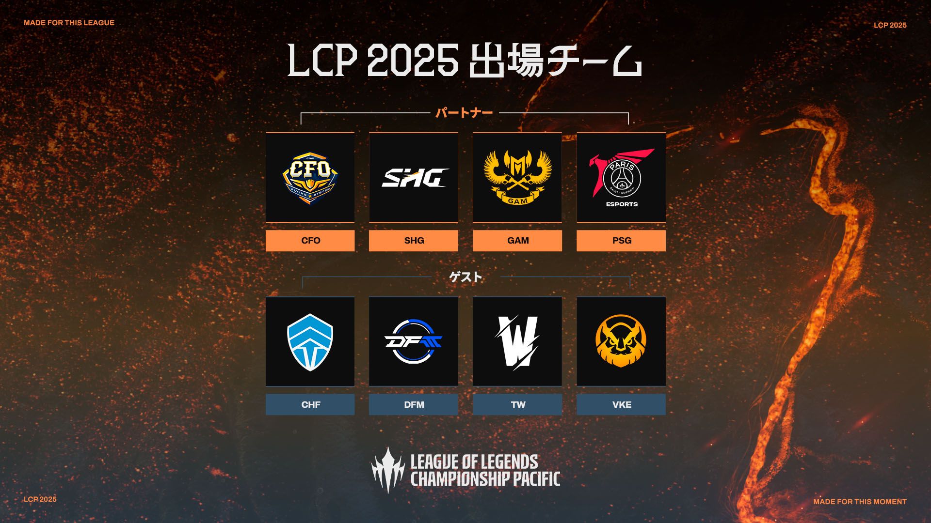 今回の選定にあたっては、上記の指針に合致し、アジア太平洋地域のLoL Esportsならではの独自性を体現するチームであることを重視しました。それでは、2025年のLCP初シーズンの出場チームをご紹介しましょう!