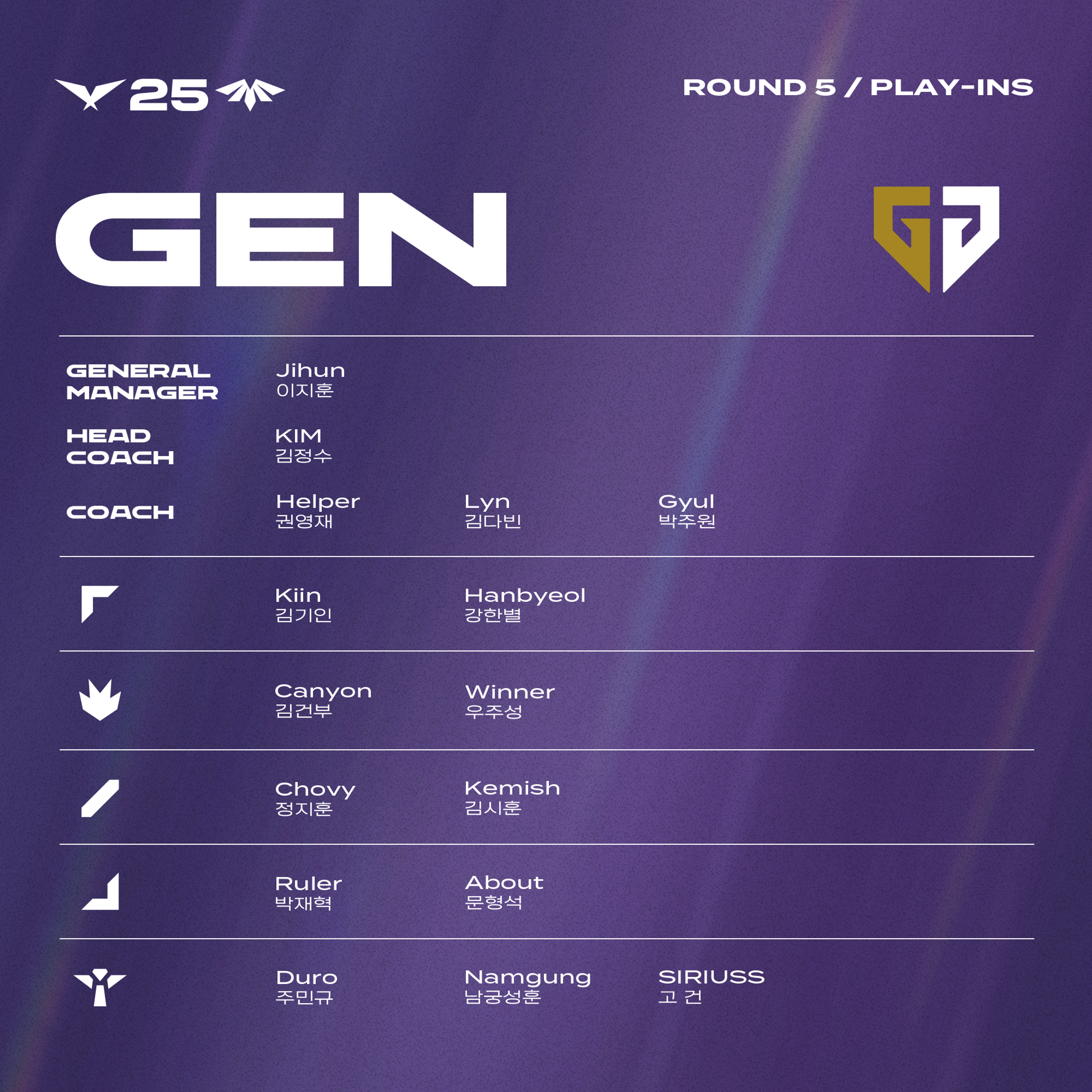 2025 LCK 정규시즌 R5~플레이인 통합 로스터를 공개합니다!