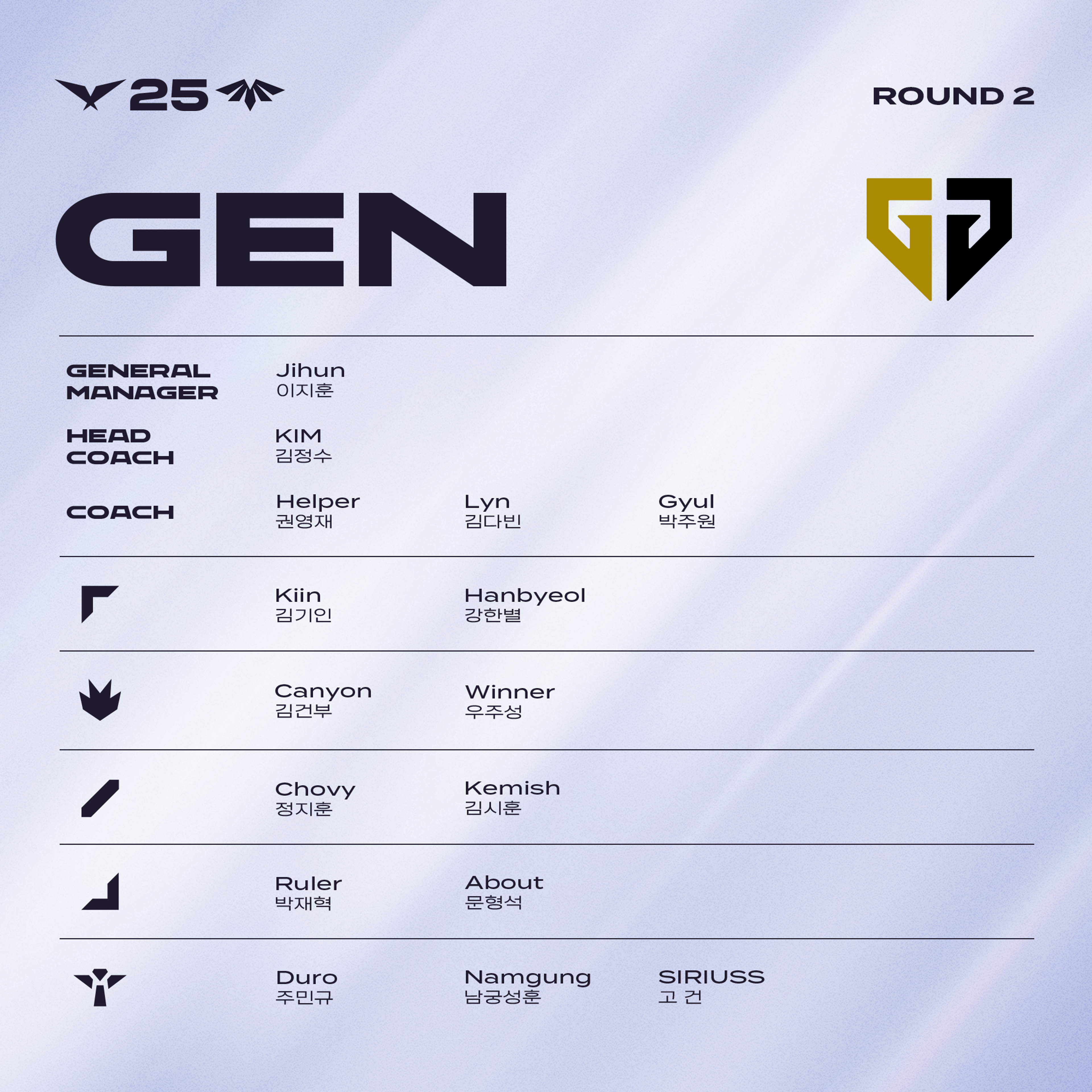2025 LCK 정규시즌 R2 통합 로스터를 공개합니다!