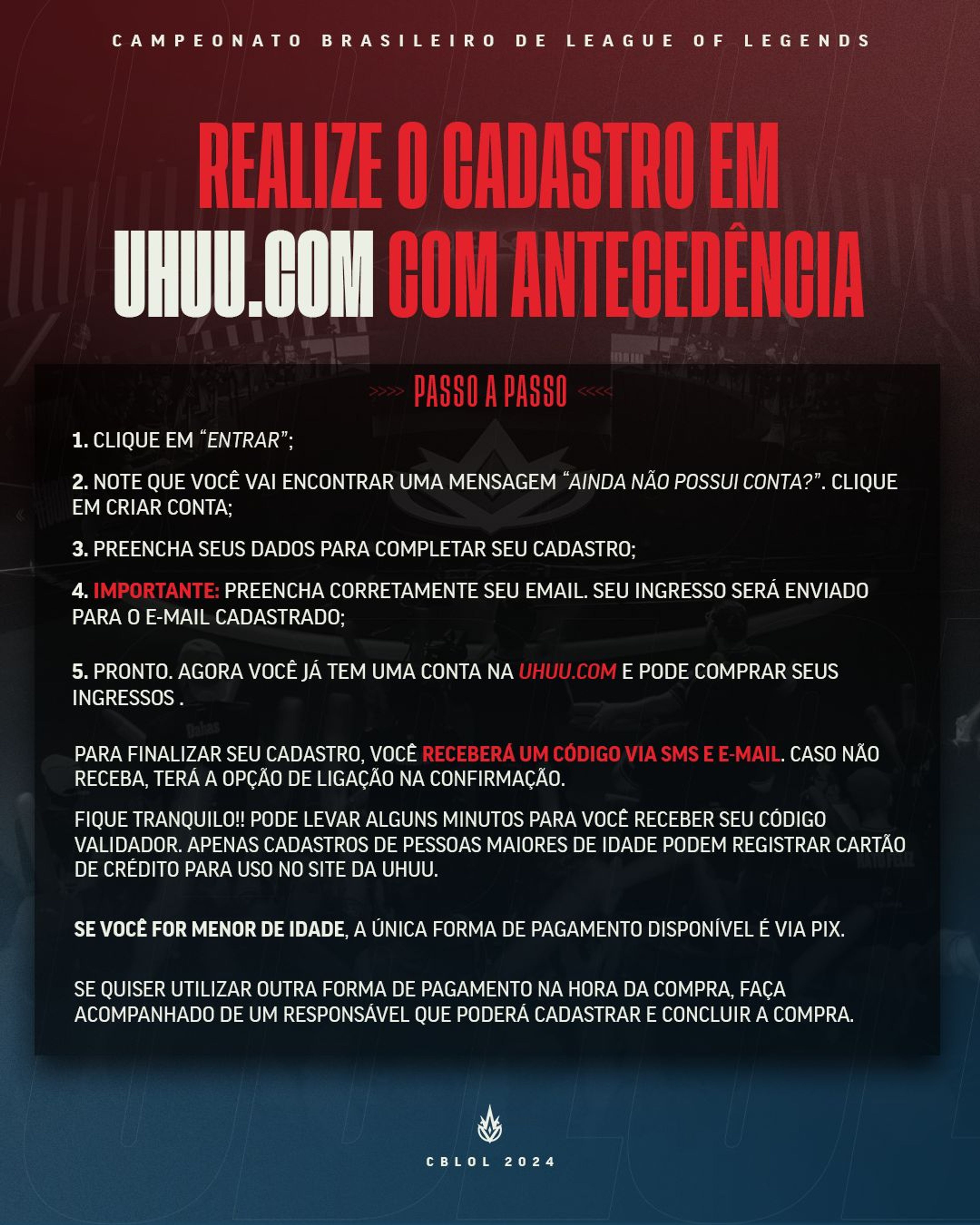 Você já sabe: temos um encontro marcado na Arena CBLOL a cada fim de semana de competição, e queremos contar com a sua presença para curtir essa experiência do início ao fim. Os ingressos para todas as rodadas da Fase de Pontos da Segunda Etapa de 2024 serão vendidos a partir do dia 21 de maio, terça-feira, às 13h. Cada pessoa terá direito a comprar dois ingressos por CPF por dia de campeonato.