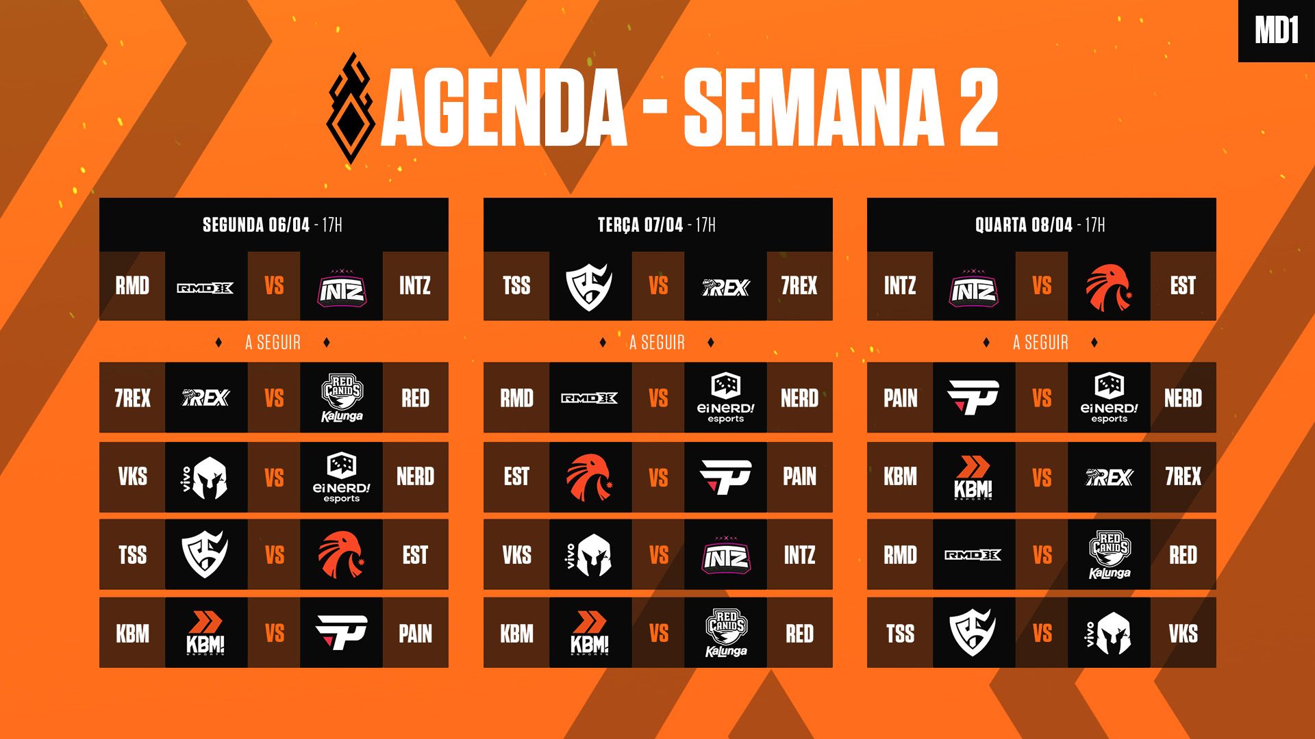 A Fase Regular do Circuito Desafiante consistirá em nove dias de disputa. Todos os times se enfrentam em turno único - em formato Md1 - se desdobrando, portanto, na disputa de cinco partidas por dia. Esta é a agenda completa de jogos: