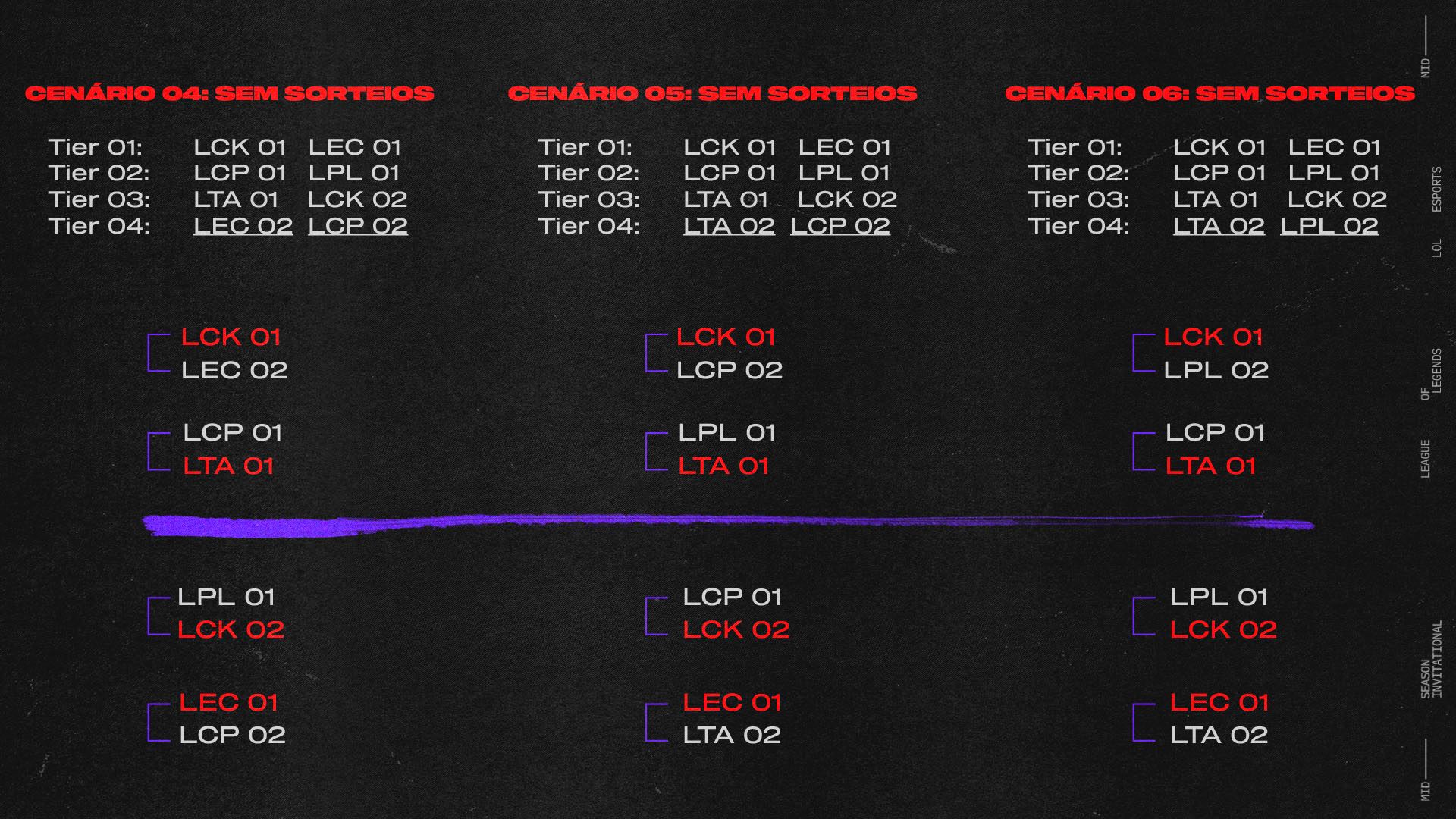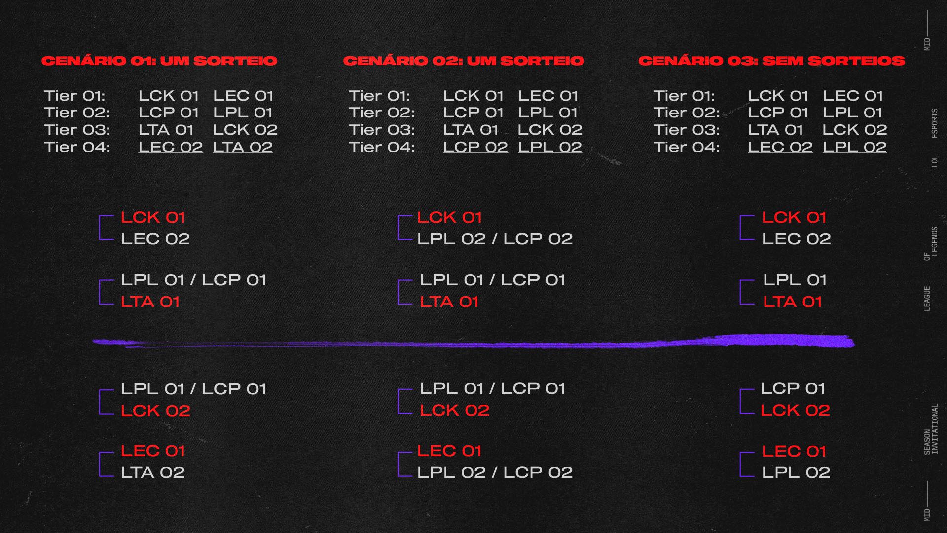 LPL1 e LCP1 podem ir para qualquer lado, enfrentando LTA1 ou LCK2.