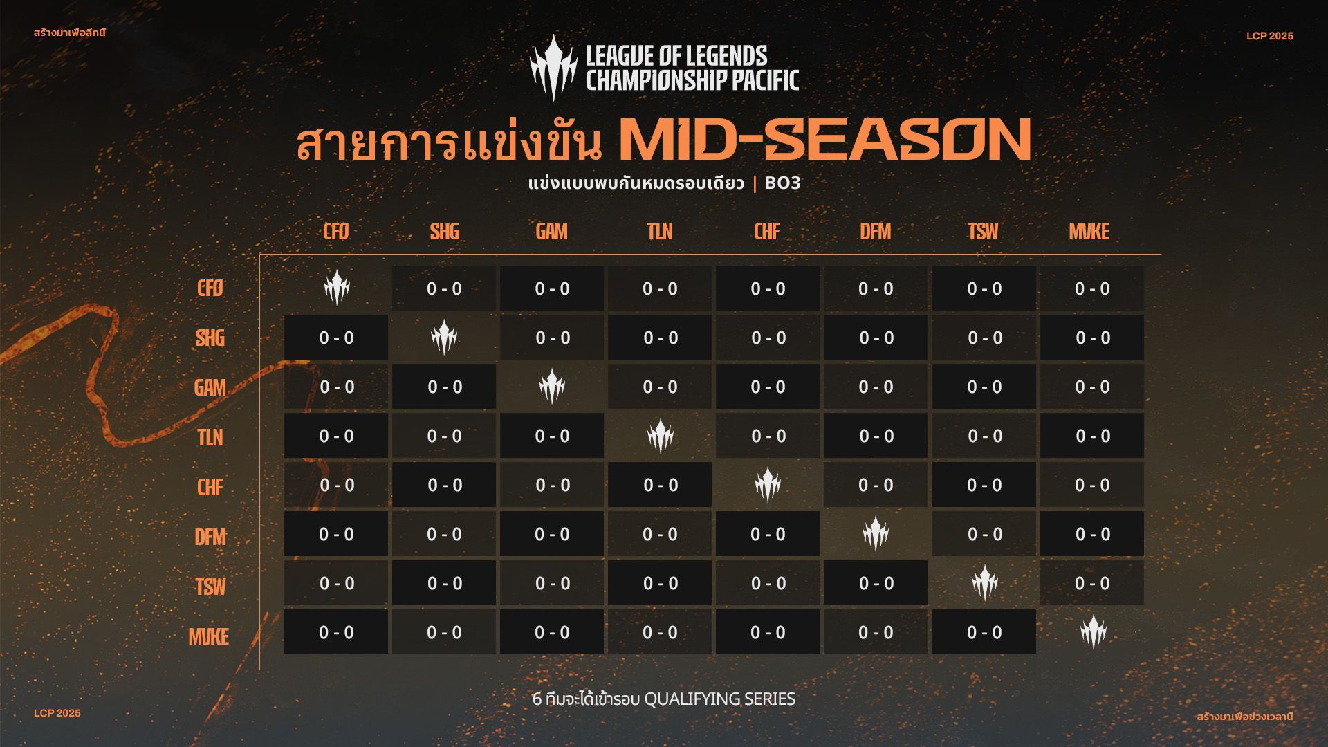 แฟน ๆ ได้รับชมการแข่งขัน Season Kickoff ที่ดุเดือดตลอดห้าสัปดาห์ที่มีทั้งการแพ้ชนะแบบเฉียดฉิว คะแนนที่ทิ้งห่างกันนิดเดียว และช็อตเด็ดสุดสร้างสรรค์ ตอนนี้ การแข่งขันจะน่าตื่นเต้นยิ่งขึ้นเพราะทีมต่าง ๆ จะลงแข่ง Mid Season แบบสด ๆ ต่อหน้าผู้ชม!