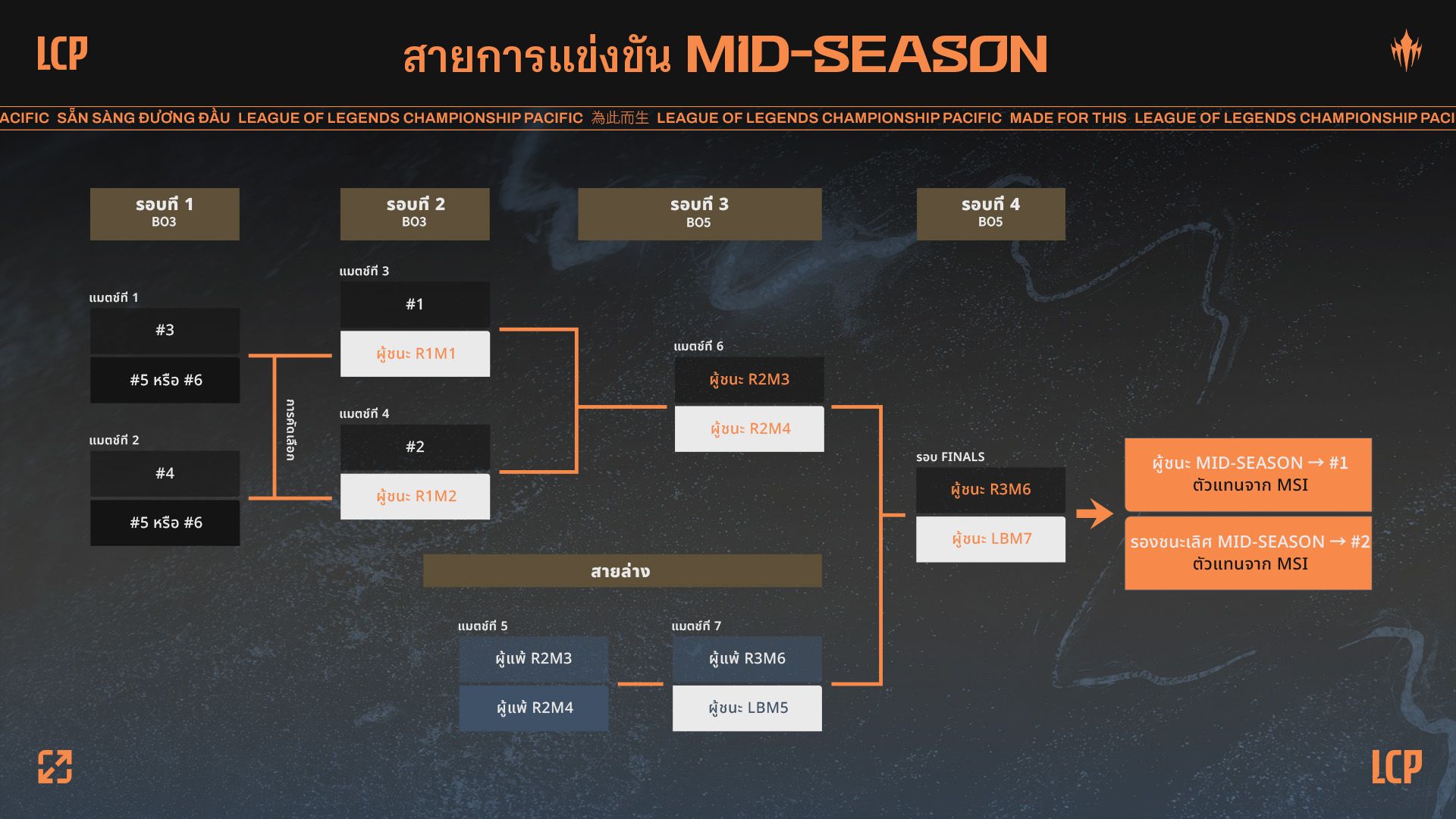 อ่านต่อเพื่อดูวิธีเข้าชมการแข่งขันใน LCP Arena พร้อมทบทวนรูปแบบและกำหนดการแข่งขันของ Mid Season ที่ทีมต่าง ๆ จาก LCP จะต้องห้ำหั่นกันเพื่อชิงสองที่นั่งใน Mid-Season Invitational (MSI) ที่ใคร ๆ ก็อยากได้