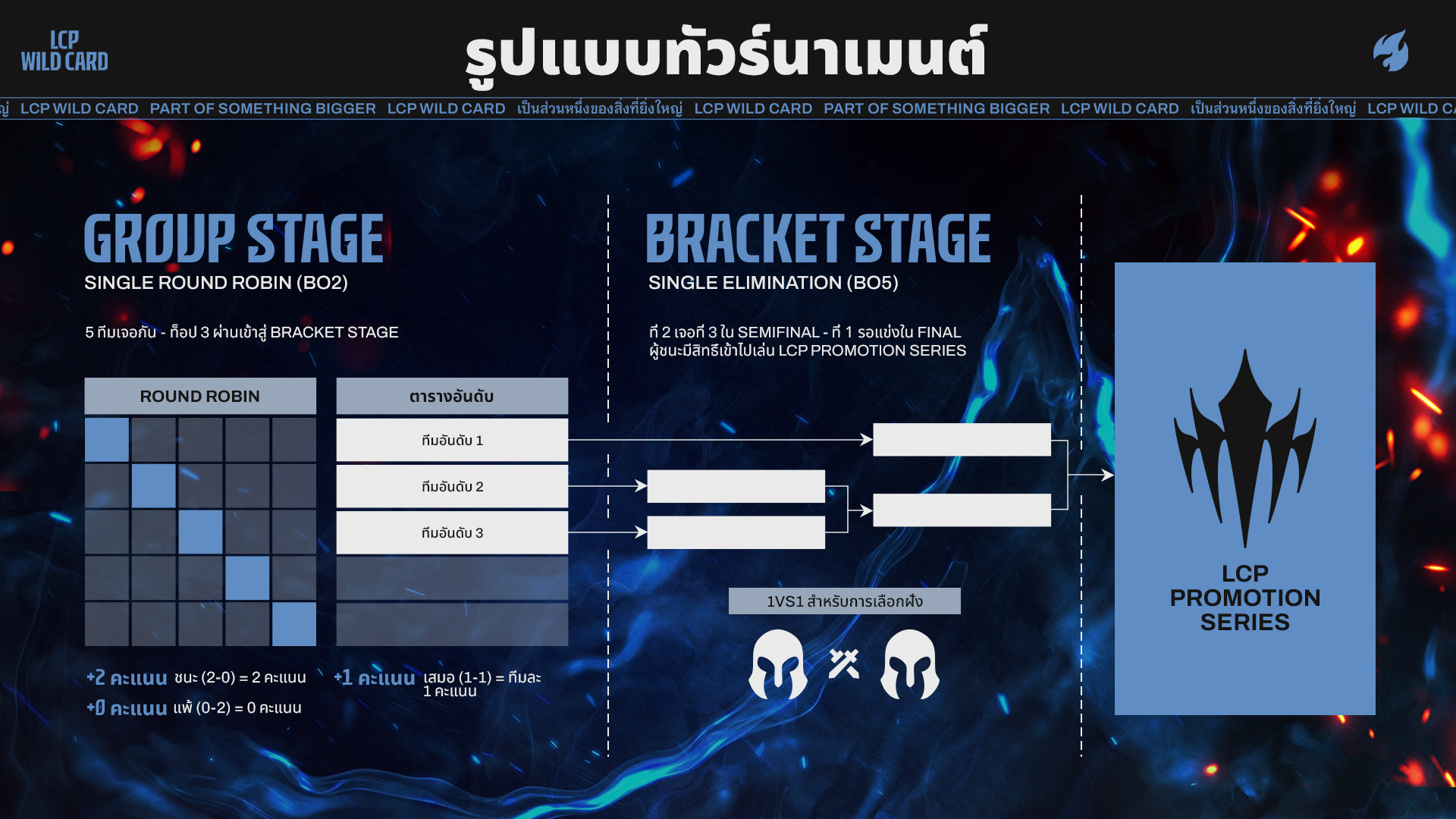 LCP Wild Card Playoffs จะจัดขึ้นตั้งแต่วันที่ 28-31 สิงหาคมในรูปแบบออนไลน์ แฟน ๆ สามารถรัมความมันส์ได้ที่ลิงก์ด้านล่าง