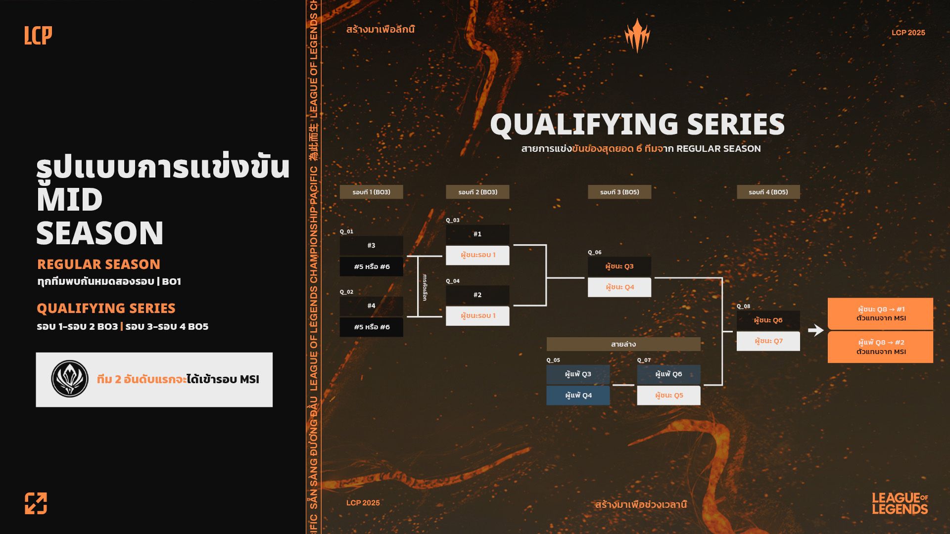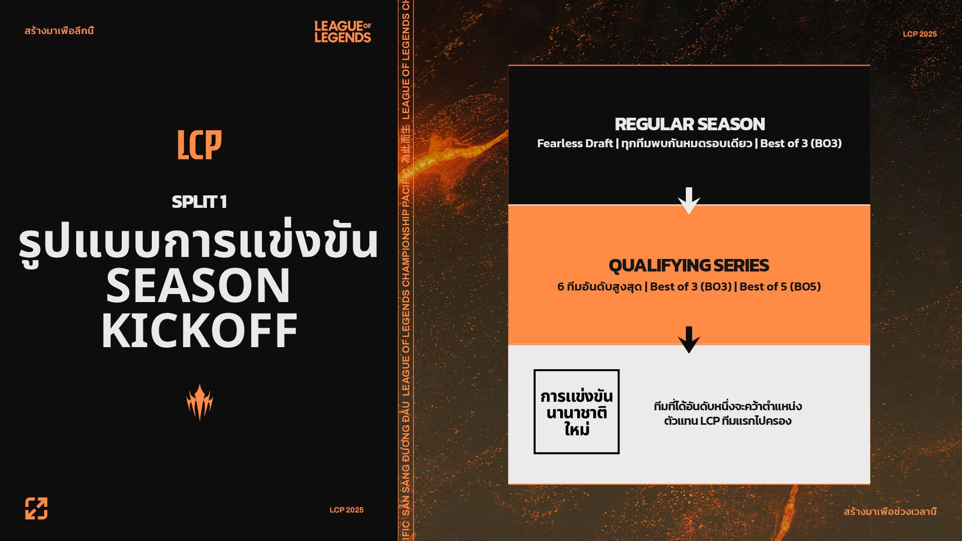 เราขอแนะนำทัวร์นาเมนต์ที่มีระบบการเลื่อนชั้นและตกชั้น (P&R) ของ LCP ซึ่งจะช่วยสนับสนุนเป้าหมายของเราในการเพิ่มความดุเดือดของการแข่งขันและความหลากหลายของทีมตัวแทน กล่าวคือ