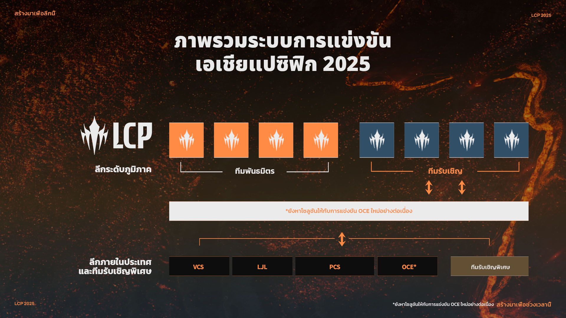 นอกจากนี้ เรายังมุ่งมั่นหาโซลูชันให้กับการแข่งขัน OCE ใหม่ที่จะปูทางสู่ LCP ในปีหน้าอีกด้วย เรากำลังสรุปรายละเอียดและจะแจ้งข้อมูลให้คุณทราบในเร็ว ๆ นี้