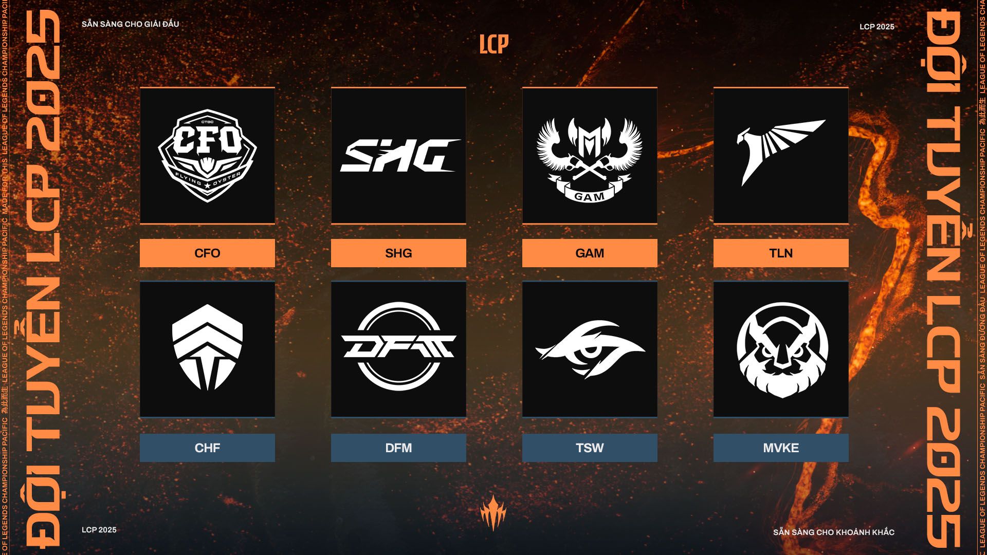 LCP không chỉ là một giải đấu mà còn là cam kết nâng tầm hệ sinh thái esports LMHT trong khu vực, với trọng tâm cốt lõi là sự đa dạng và phát triển tính cạnh tranh. Các đội tuyển sẽ tham gia mùa giải LCP 2025 sắp tới và khởi đầu chương mới của Esports LMHT tại Châu Á-Thái Bình Dương gồm có: