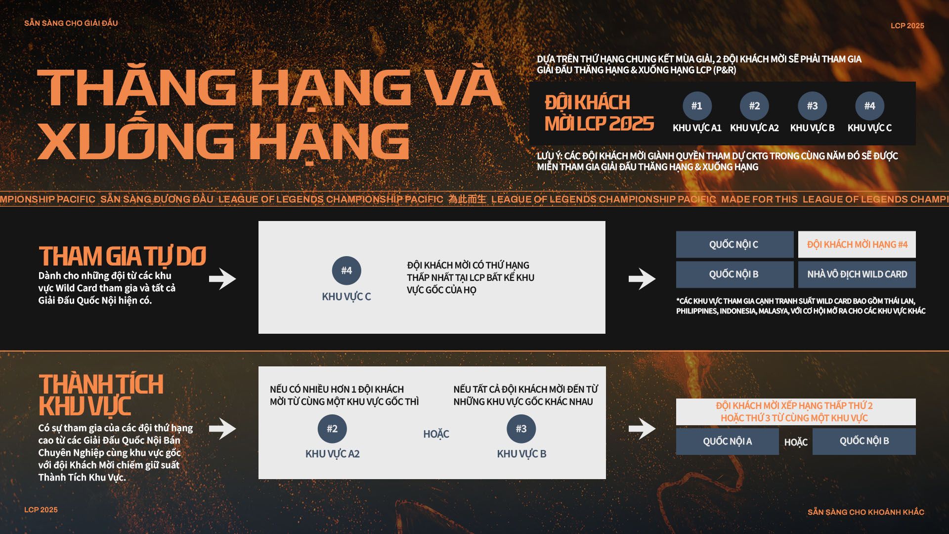 Để tóm tắt lại, chúng tôi đã trình bày tổng quan về mùa giải 2025 tại đây, trong đó bao gồm thể thức cho giai đoạn Khởi Động Mùa Giải và Giữa Mùa Giải. Ngoài ra, hãy xem video giải thích thể thức này để được giải thích chi tiết về thể thức LCP cũng như giải đấu thăng hạng/xuống hạng.