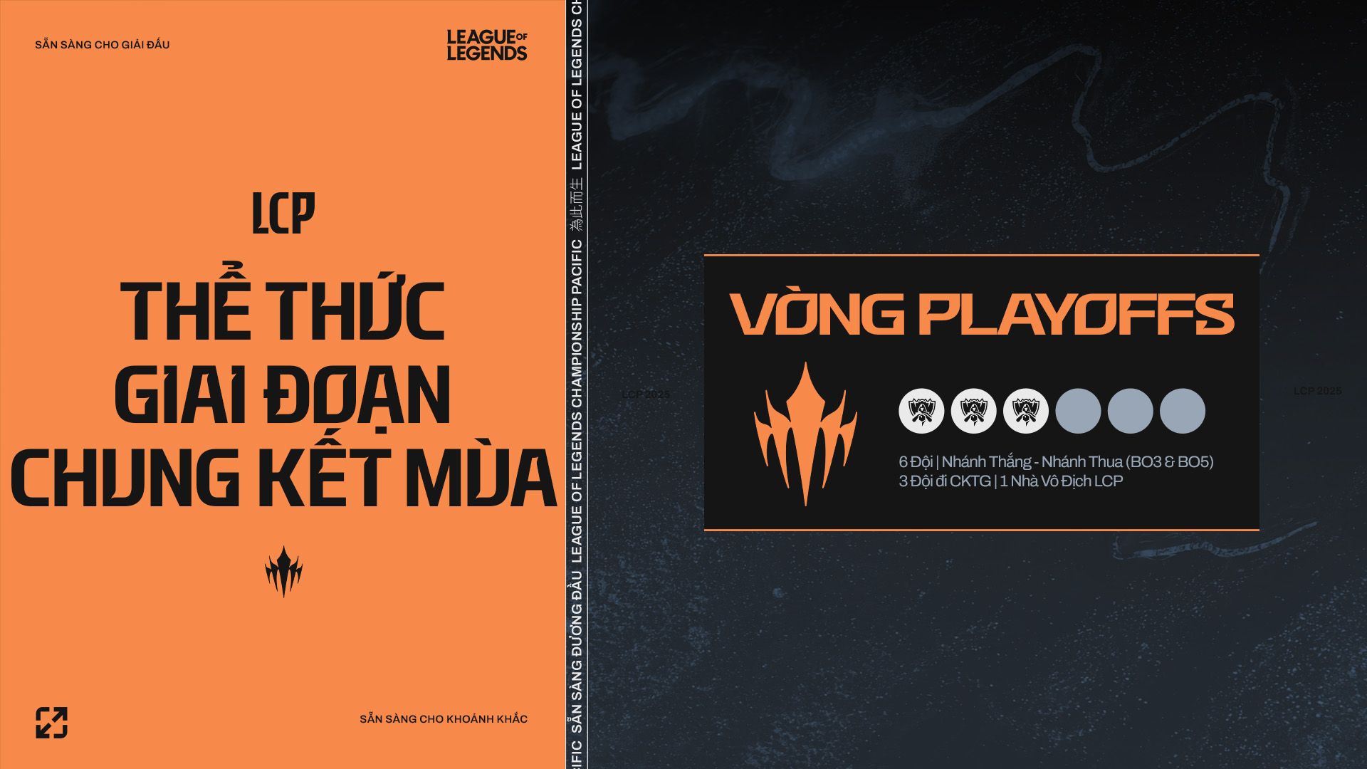 Từ ngày 05/09 - 21/09, 6 đội bước vào Vòng Playoffs sẽ trải qua một loạt các trận BO3 và Best-of-5 (BO5) theo thể thức Nhánh Thắng - Nhánh Thua để tranh 3 suất tham dự CKTG 2025. Đội tuyển giành chiến thắng cuối cùng cũng sẽ trở thành nhà vô địch LCP đầu tiên!